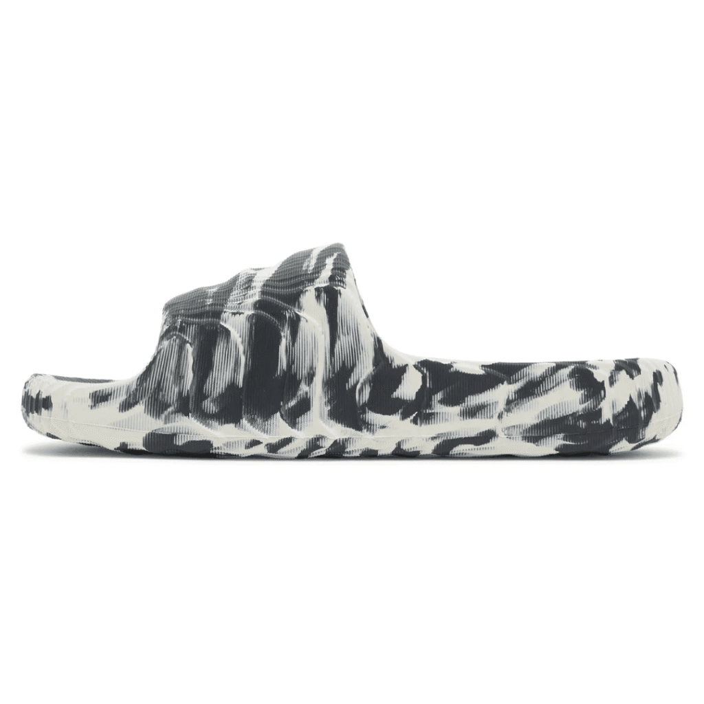 The adidas Adilette 22 Slide ‘Desert Sand’ delivers a futuristic take on the classic comfort sandal. Inspired by space exploration and 3D topography, the slip-on features wavy lines throughout the one-piece build, composed of EVA foam that contains plant-based content derived from sugarcane. A monochrome finish in a subtle cream hue is disrupted by printed text on the lateral midsole that reads ‘The Brand with the Three Stripes’ in black lettering.