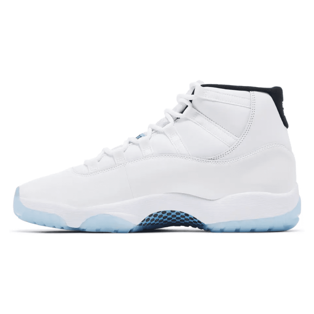 The 2024 edition of the Air Jordan 11 Retro ‘Legend Blue / Columbia’ brings back an OG colorway of the championship model. Laces feed through webbing eyelets to secure the white leather upper, bolstered with a tonal patent leather mudguard and marked with a blue embroidered Jumpman on the lateral collar. Contrasting black accents land on the interior lining and back tab, featuring signature ’23’ branding. A white Phylon midsole packs a full-length Air-sole unit for lightweight cushioning. Underfoot, a blue-tinged translucent rubber outsole reveals a carbon fiber shank plate for midfoot stability.