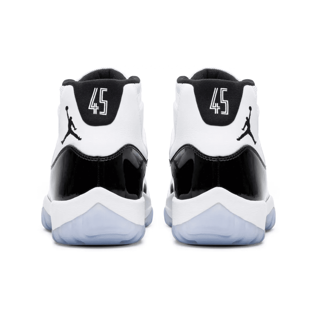 The 2018 edition of the Air Jordan 11 Retro ‘Concord’ features ‘45’ stamped on the black heel tab—a nod to the jersey number that Michael Jordan wore upon his return to basketball following his first retirement. The rest of the build keeps the shoe’s signature details intact, including a white ballistic mesh upper, black patent leather overlays and an icy translucent outsole underfoot.