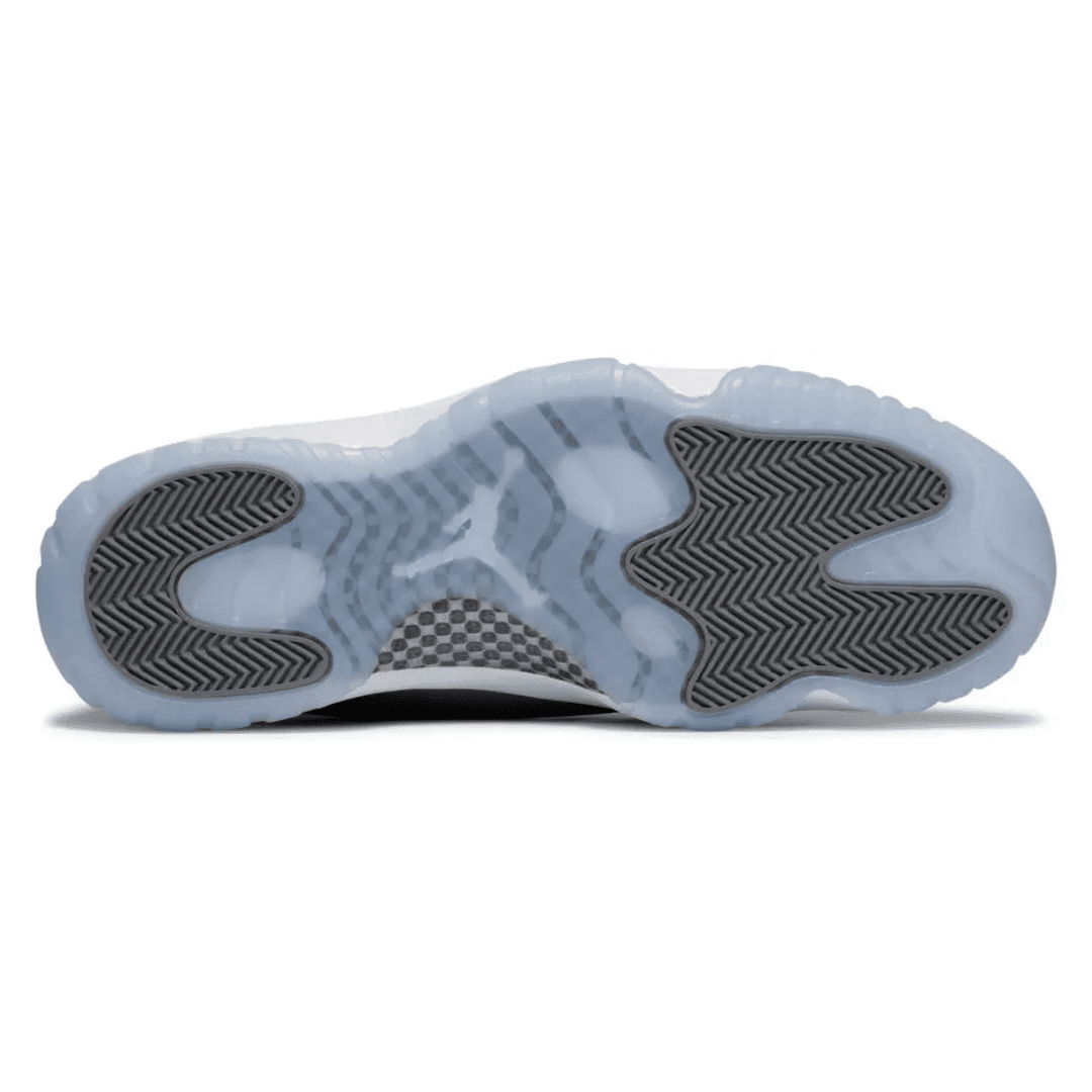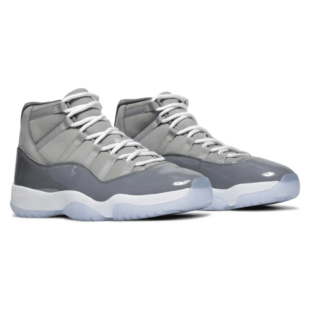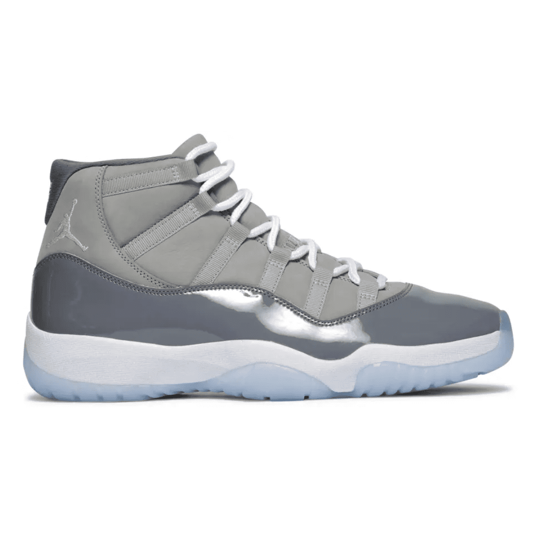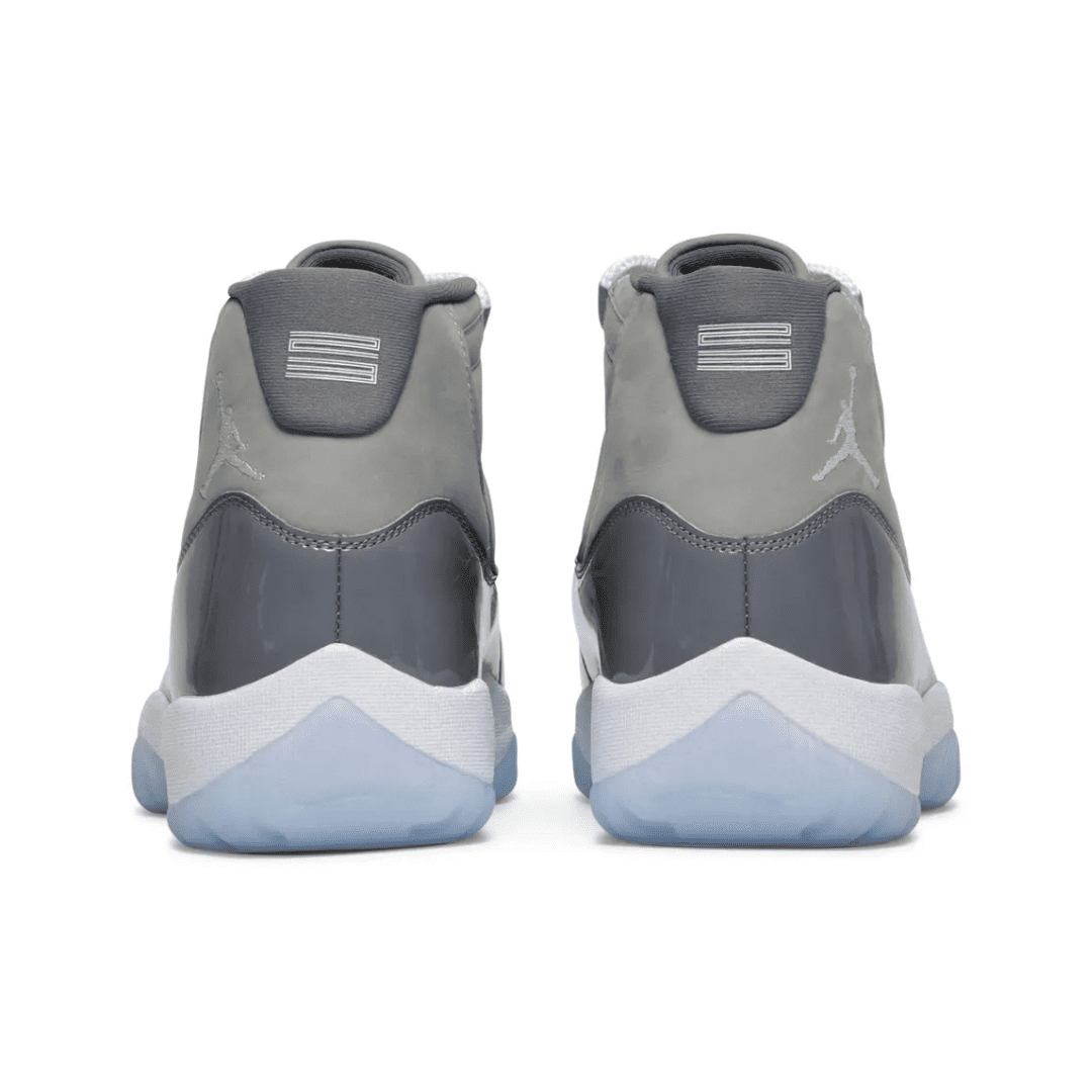 The 2021 edition of the Air Jordan 11 Retro ‘Cool Grey’ brings back a colorway first released in 2001 and retroed again in 2010. Celebrating the 20th anniversary of the original launch, the mid-top build is faithful to the original, featuring a nubuck upper with tonal webbing lace loops and a shiny patent leather overlay, all rendered in tones of Medium and Cool Grey. A white Jumpman logo is embroidered on the lateral ankle, while a stylized ‘23’ decorates the heel notch. Lightweight cushioning is provided by a full-length Air-sole unit housed within a white Phylon midsole. Underfoot, a translucent outsole reveals a carbon fiber spring plate for enhanced on-court responsiveness.
