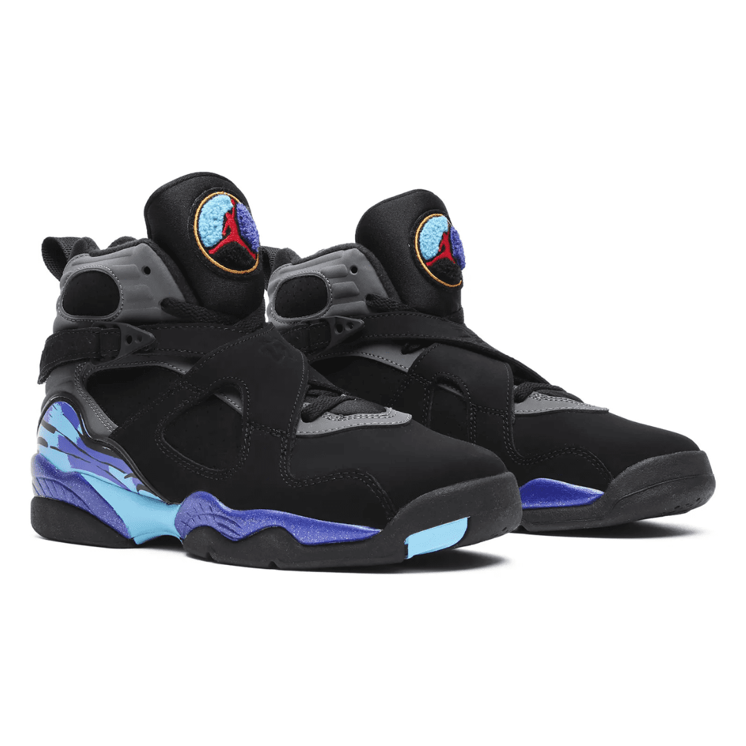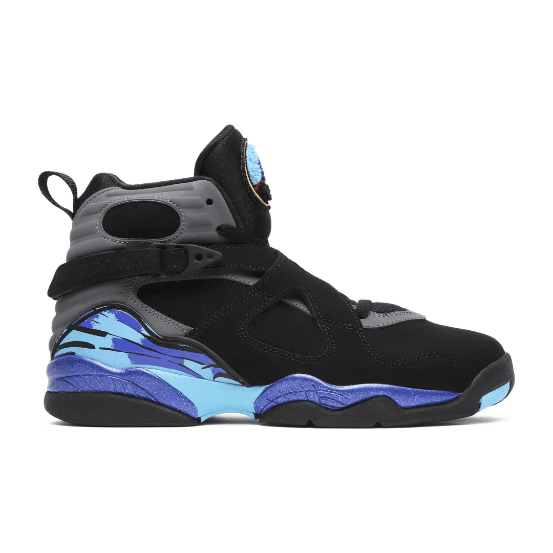 The Nike Air Jordan 8 Retro ‘Aqua’ 2015 is a retro-release of the iconic 1993 OG Air Jordan 8 ‘Aqua’ colorway. First worn by Michael Jordan at the 1993 NBA All-Star Game in Salt Lake City, the sneaker saw its first retro fourteen years later in 2007. The Nike Air Jordan 8 Retro ‘Aqua’ 2015 comes dressed in a black Durabuck upper with Flint Grey overlays and Aqua and Concord accents.