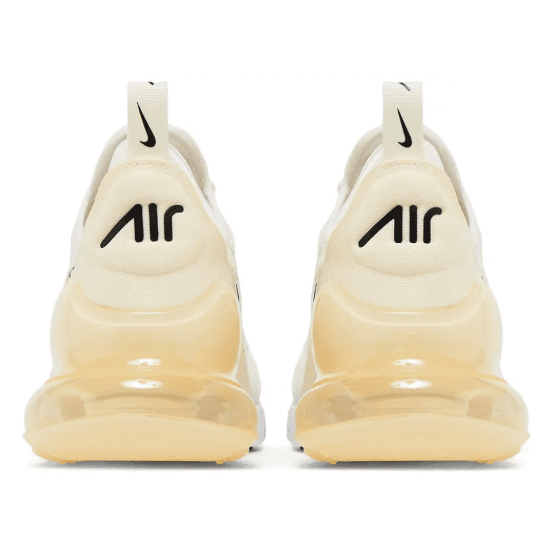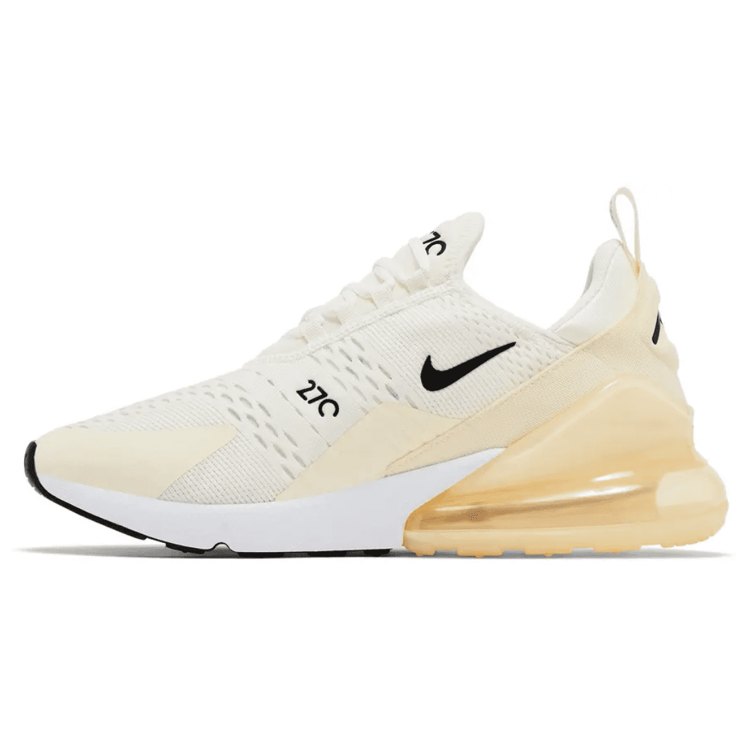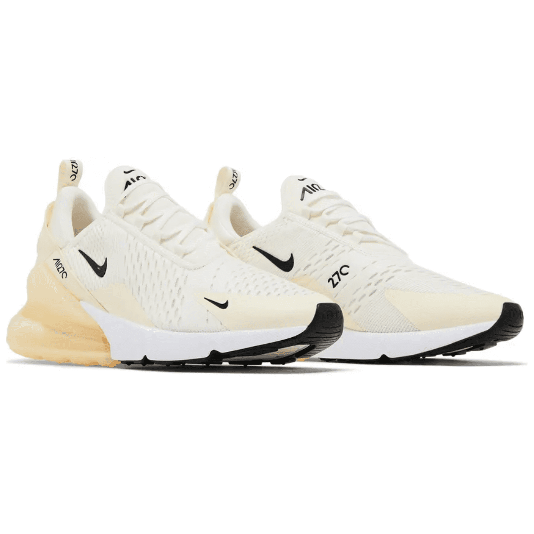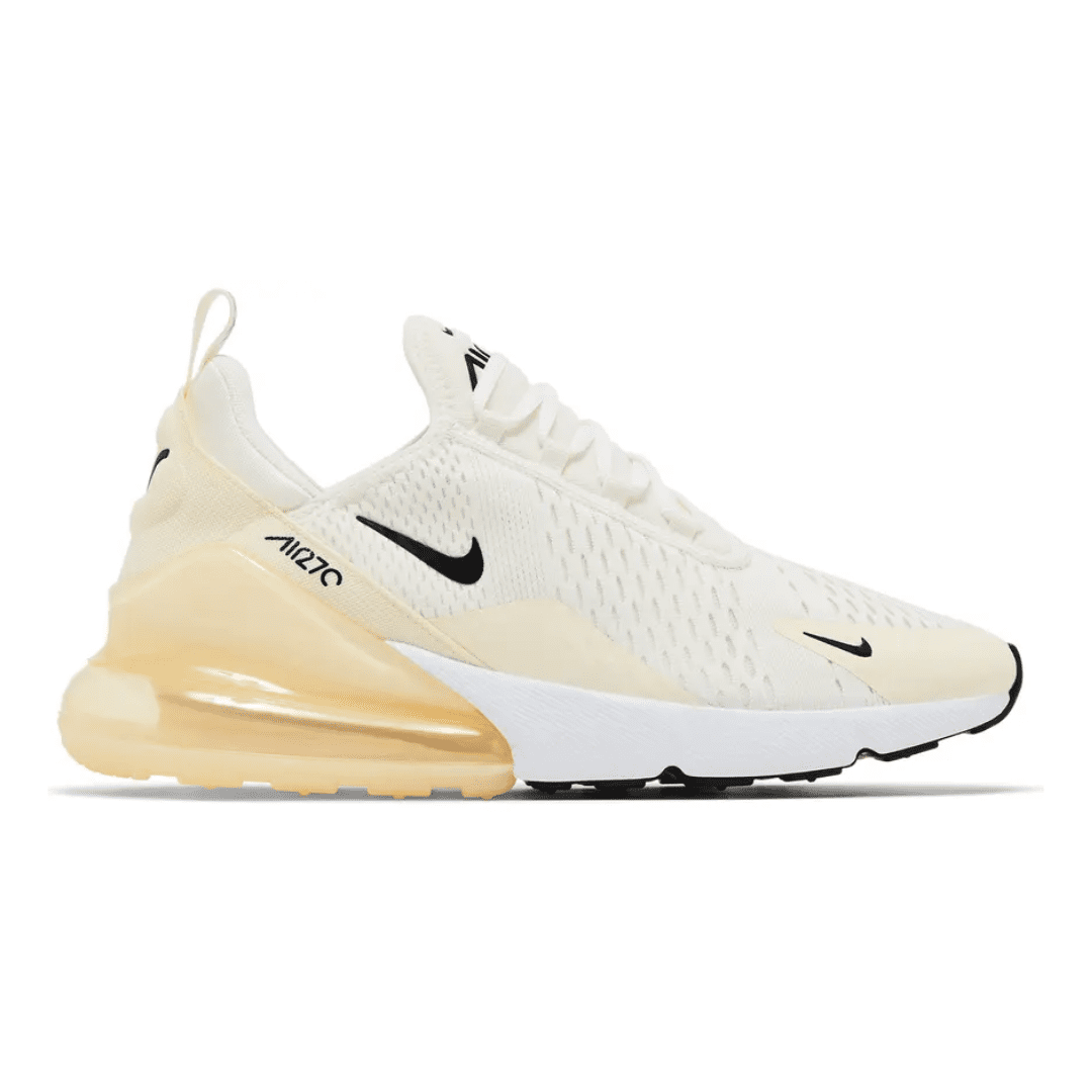 The Air Max 270 combines design heritage from the Air Max 180 and Air Max 93, bringing together classic inspiration and contemporary comfort. The ‘Coconut Milk’ colorway showcases a soft off-white mesh upper with subtle cream and beige tones, creating a clean, minimalist look that pairs effortlessly with any outfit.