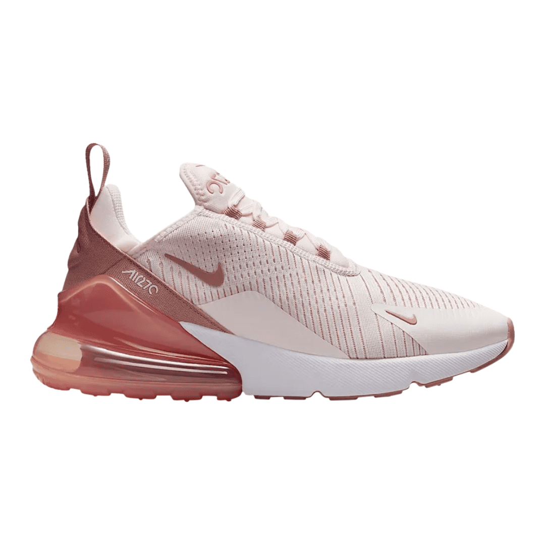 The Air Max 270 blends iconic elements from the Air Max 180 and Air Max 93, combining classic design with everyday comfort. The ‘Pomegranate / White / Pearl Pink’ colorway stands out with a vibrant mix of rich red tones, soft pink accents, and a crisp white base, creating a bold yet feminine aesthetic.