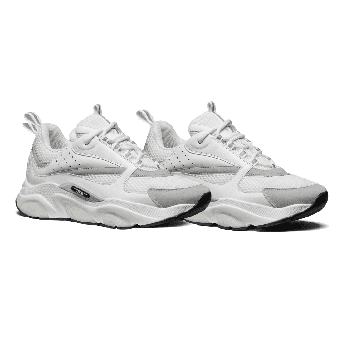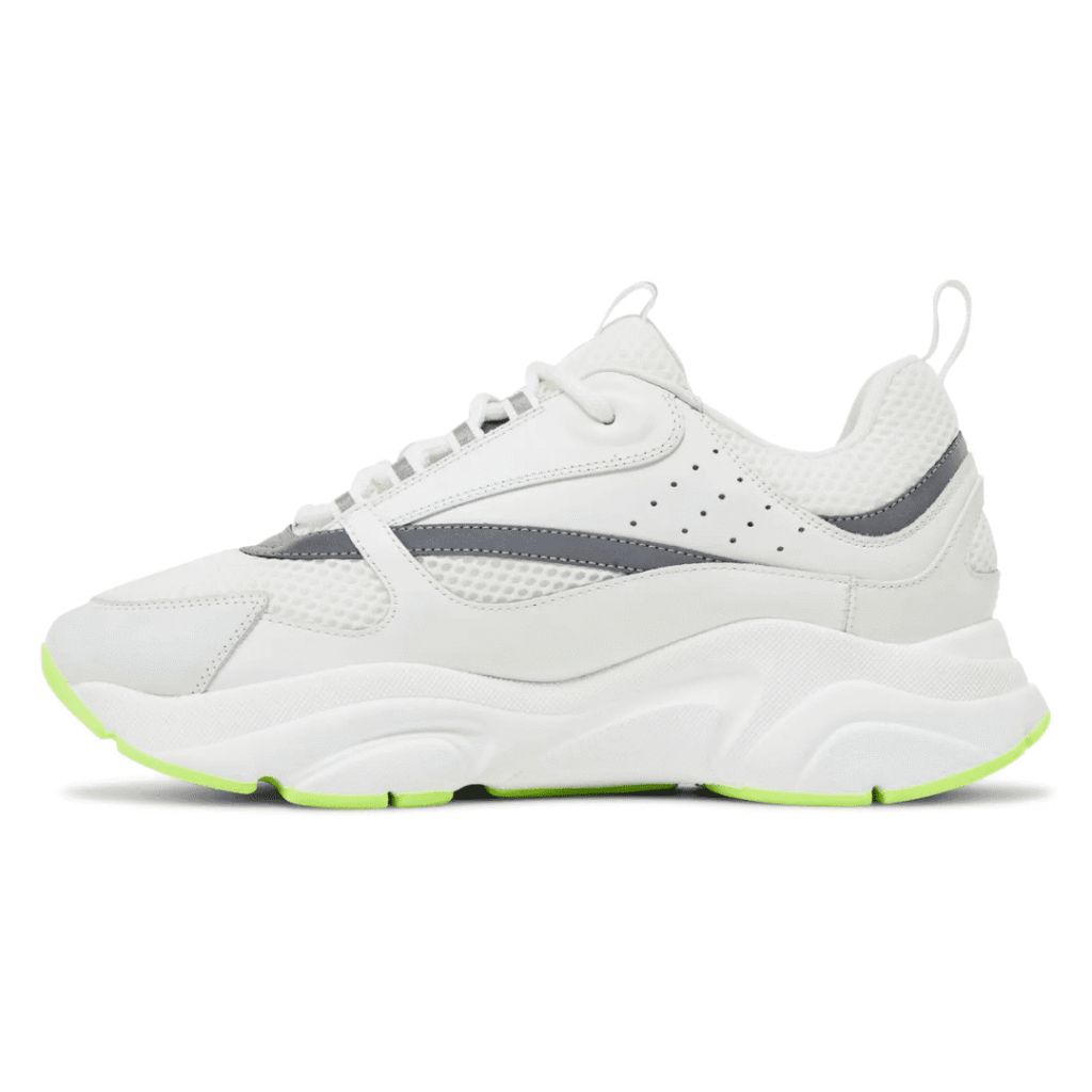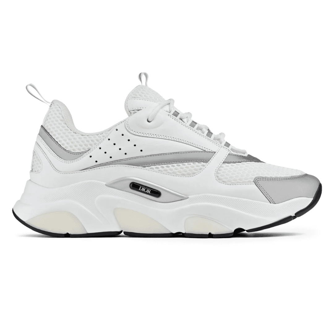 The Dior B22 ‘White Reflective’ merges retro running style with luxury craftsmanship. Made from premium white calfskin leather and mesh, it features reflective silver detailing, a sculpted chunky sole, and tonal Dior branding for a sleek, futuristic look that balances performance with Parisian elegance.
