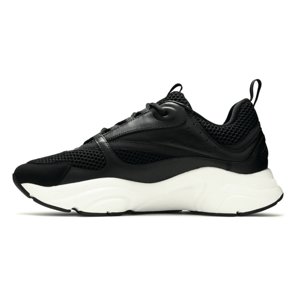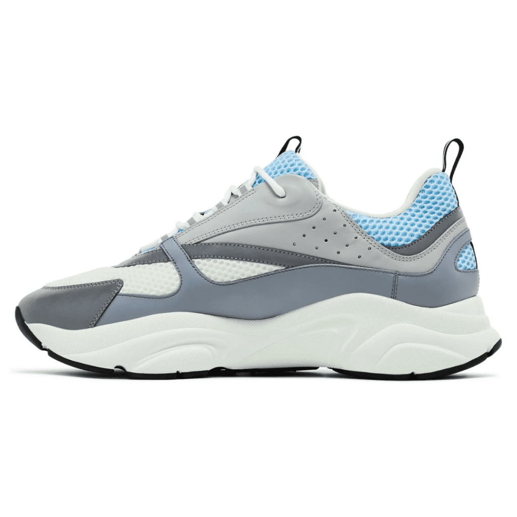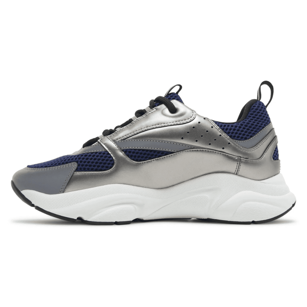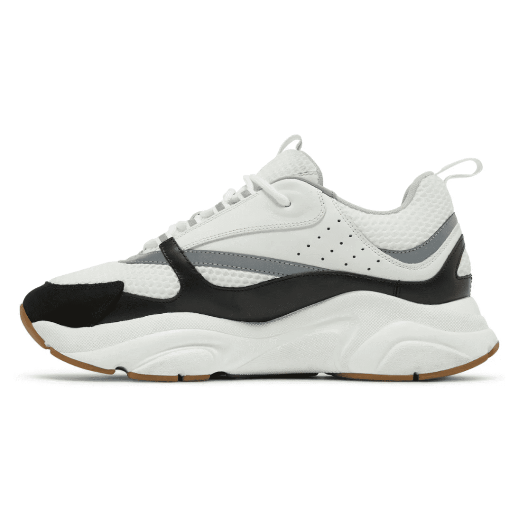 The Dior B22 ‘White Reflective’ merges retro running style with luxury craftsmanship. Made from premium white calfskin leather and mesh, it features reflective silver detailing, a sculpted chunky sole, and tonal Dior branding for a sleek, futuristic look that balances performance with Parisian elegance.