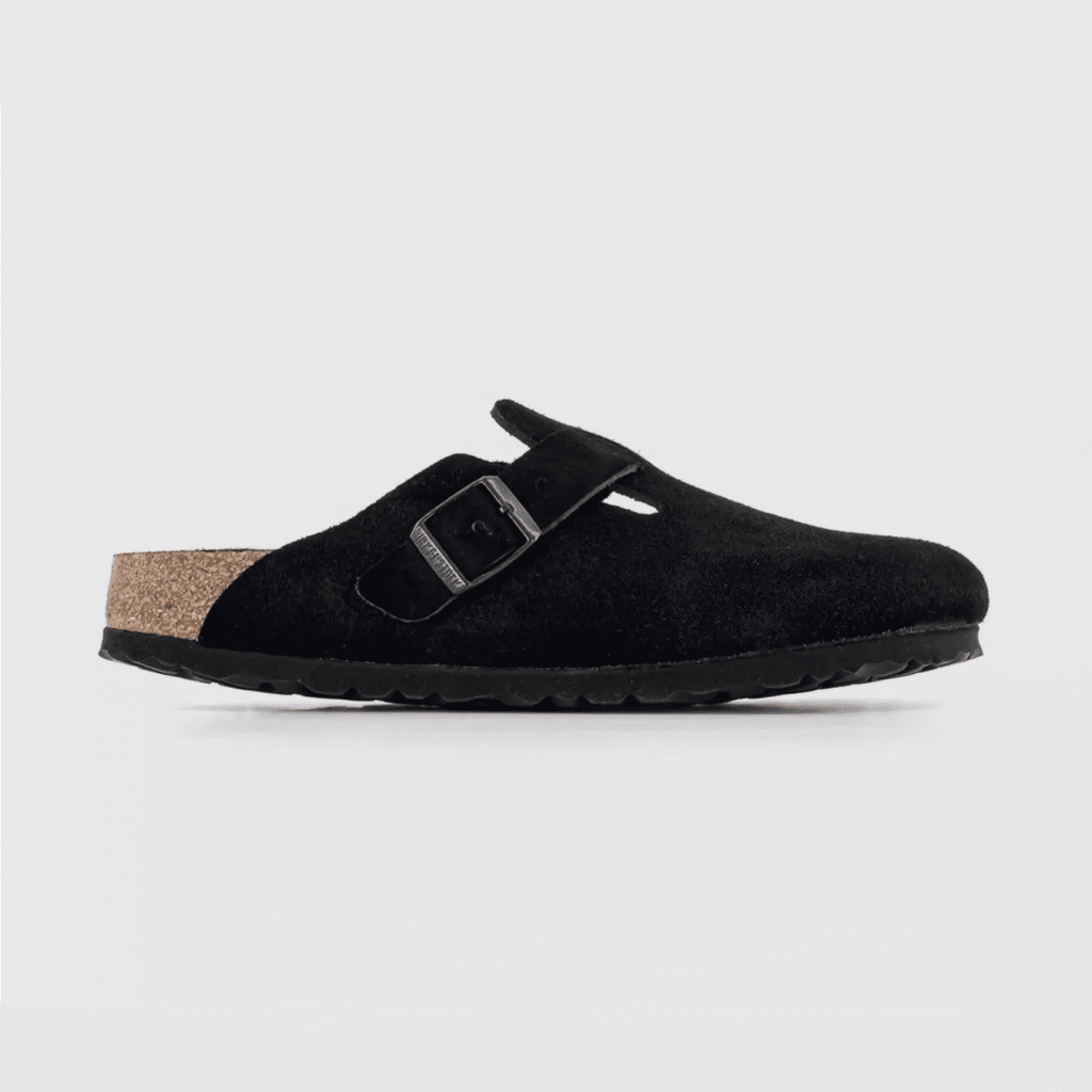 The iconic closed-toe, open-back clog with an adjustable instep strap. Features BIRKENSTOCK’s signature contoured cork-latex footbed with suede lining and a lightweight EVA outsole for cushioning and grip.