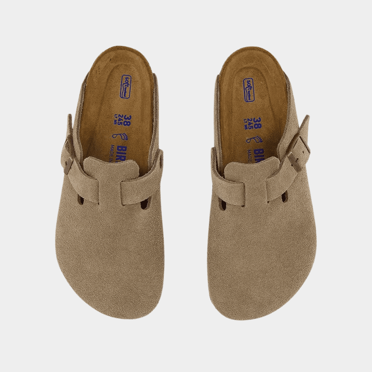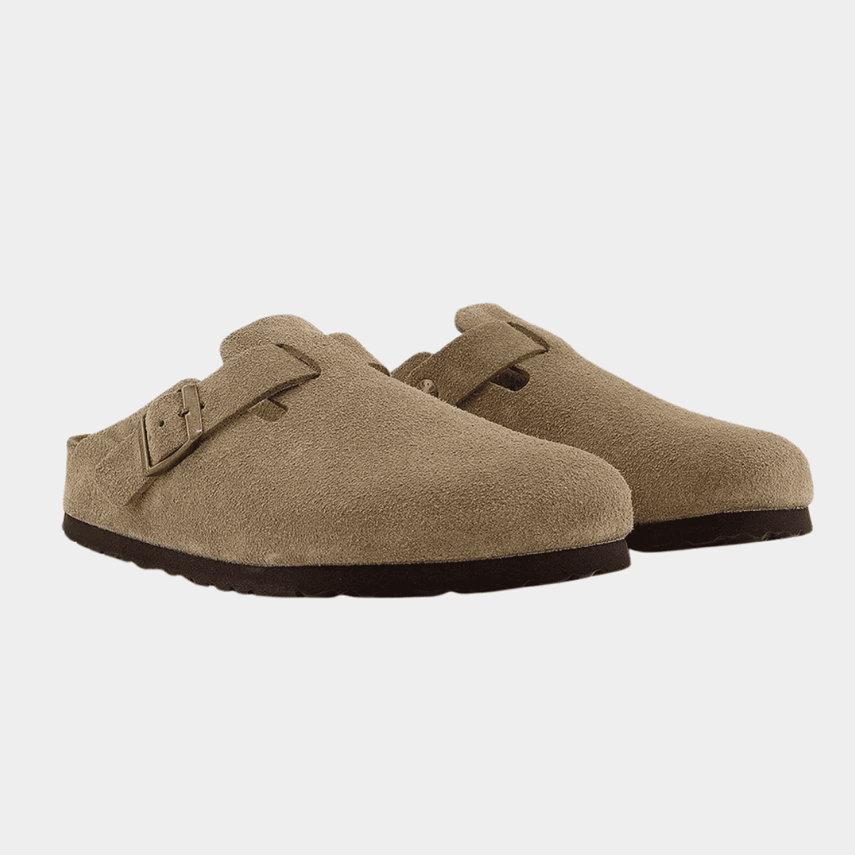 The iconic closed-toe, open-back clog with an adjustable instep strap. Features BIRKENSTOCK’s signature contoured cork-latex footbed with suede lining and a lightweight EVA outsole for cushioning and grip.