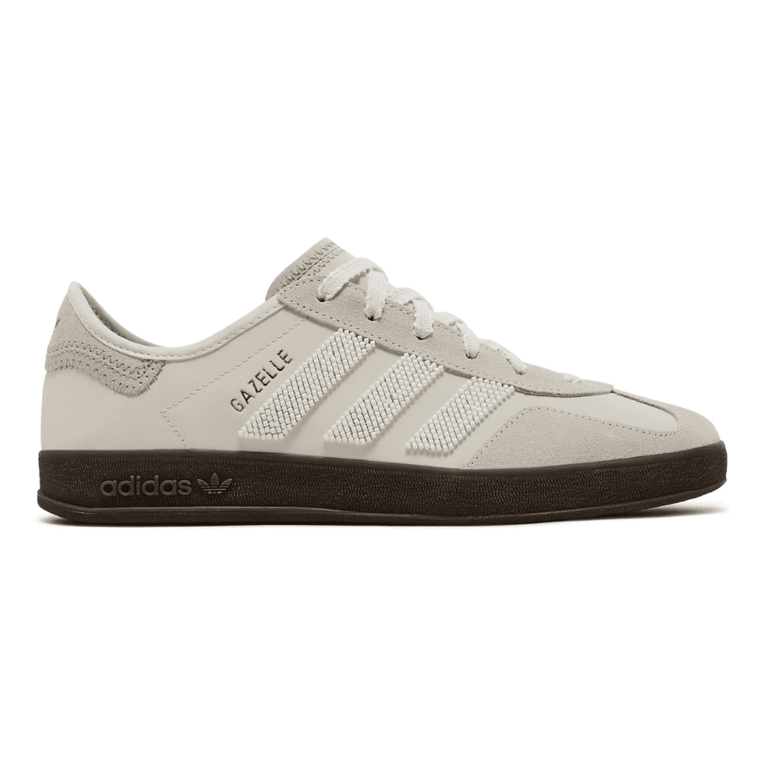 The CLOT x adidas Gazelle Indoor ‘Off White’ is drawn from a collaborative two-piece pack that continues Edison Chen’s East meets West design theme. Beaded three-stripes decorate the off-white leather upper, featuring tonal suede detailing on the forefoot overlay and back tab. The latter displays a debossed Trefoil logo in blue, while ‘GAZELLE’ is stamped in gold foil lettering on the lateral quarter panel. Anchoring the sneaker is a durable gum rubber sole unit.