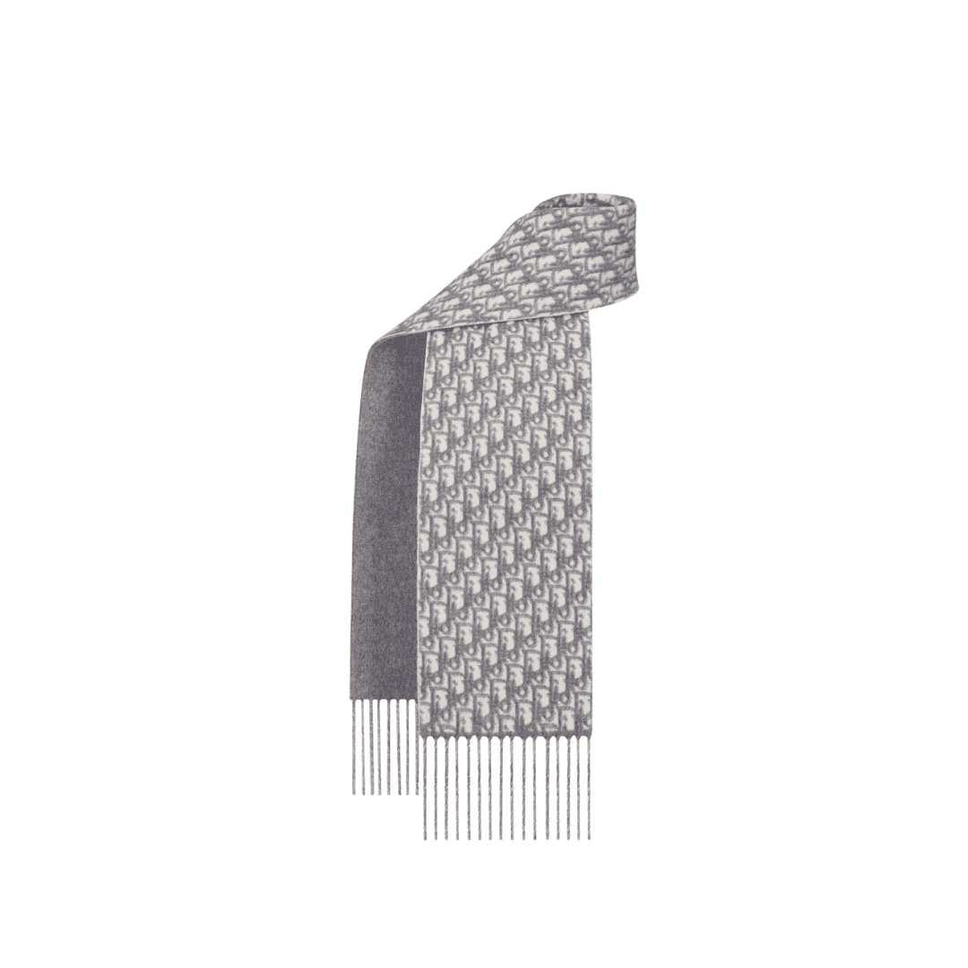 The Dior Oblique scarf showcases a motif that has been an icon since 1969. Crafted in grey cashmere, the double-sided style has one solid-colored side and is adorned with the Dior Oblique motif on the other. The scarf may be worn around the neck or draped over the shoulders.