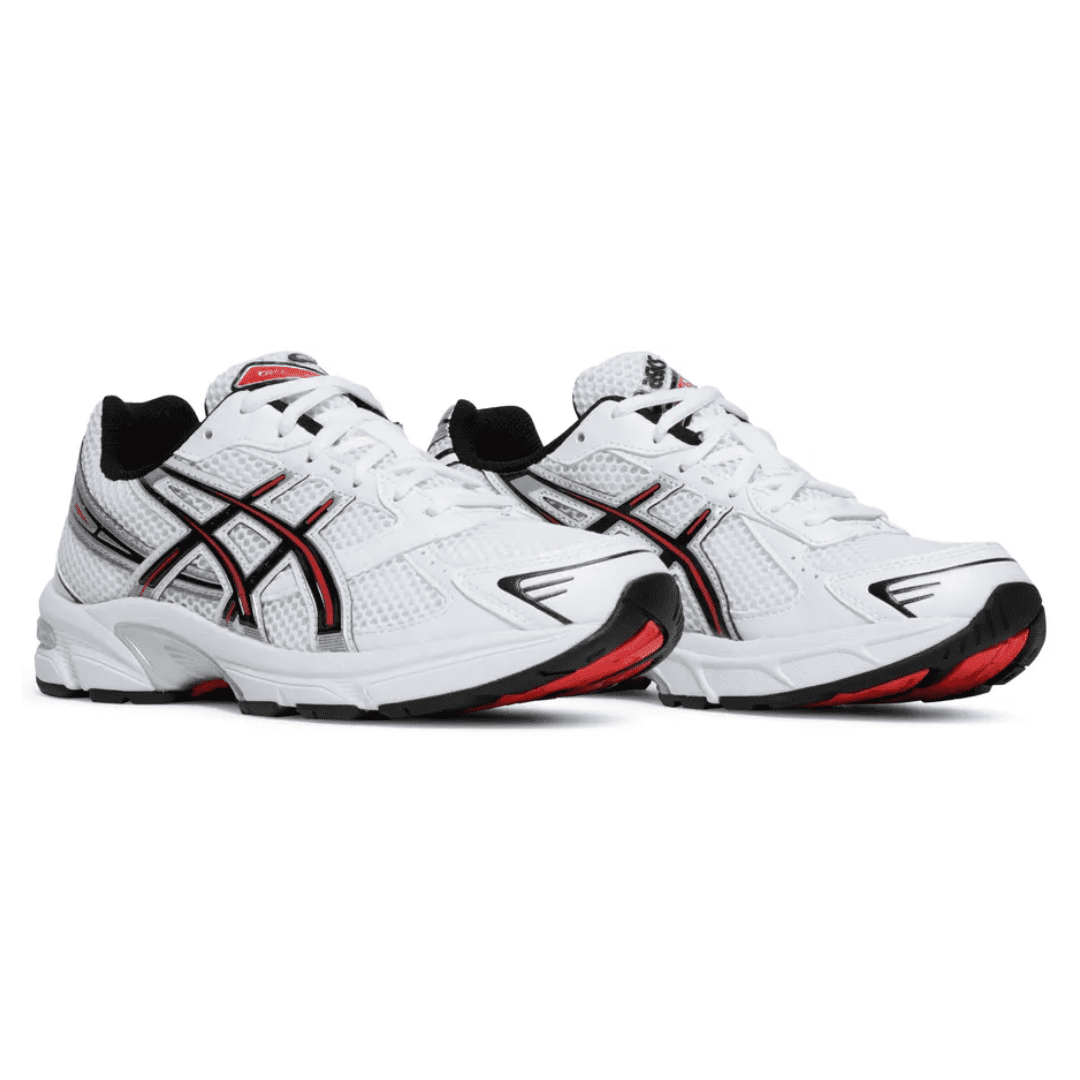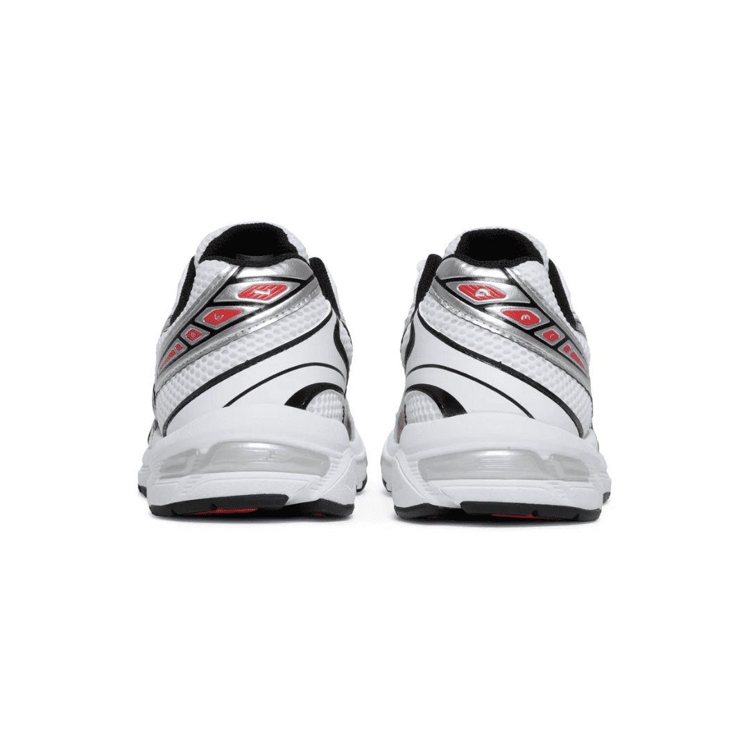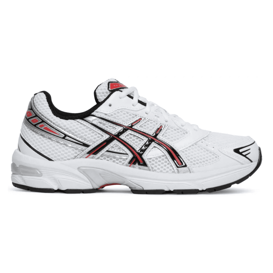 The ASICS Gel 1130 ‘White Electric Red’ brings white open-cell mesh with tonal synthetic leather overlays. Scarlet accents stand out on the signature tiger stripes, outlined in glossy black trim, and a swooping heel overlay in metallic silver. The cushioning platform comprises a lightweight foam midsole with a shock-absorbing Gel insert in the heel.