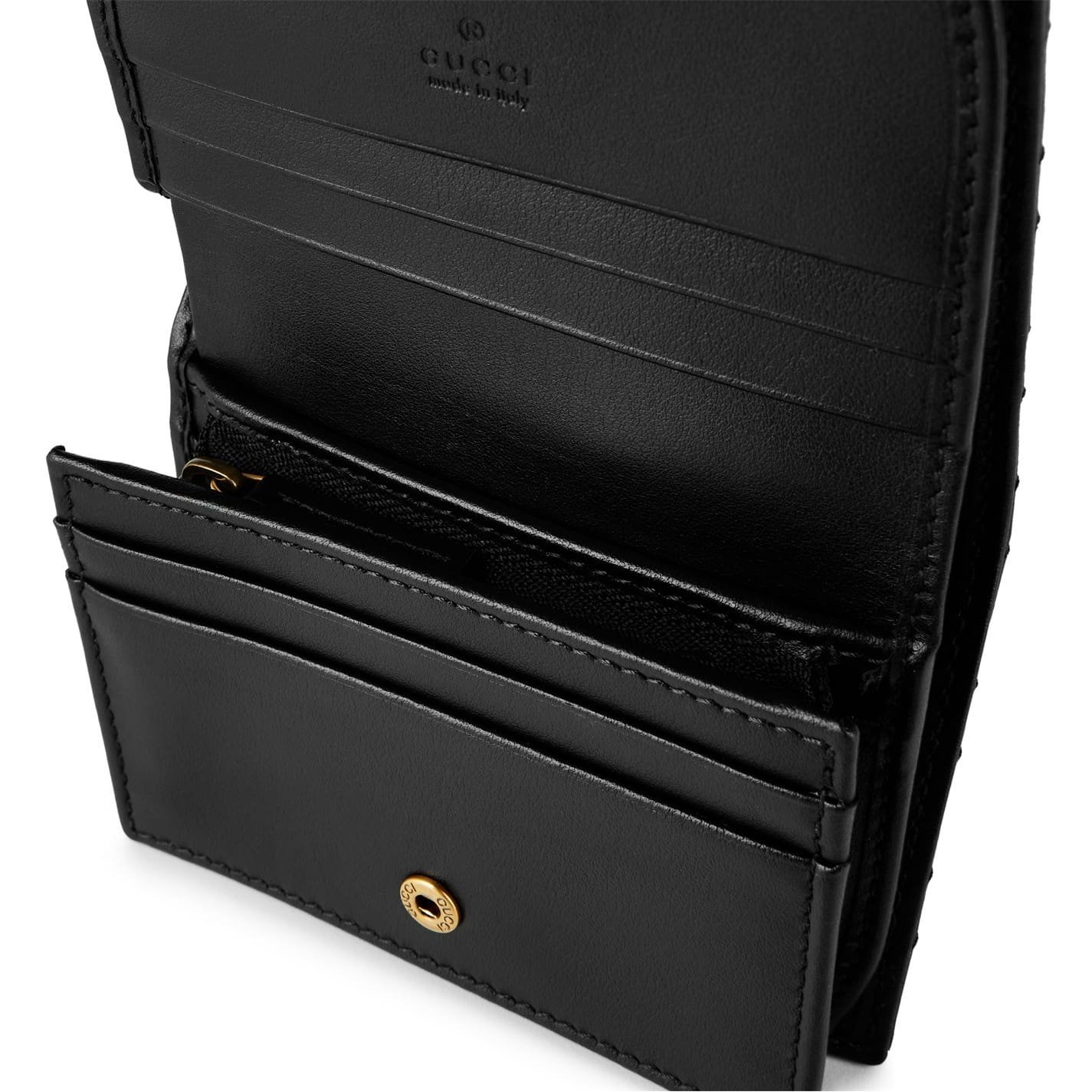 Gucci’s GG Marmont Card Case Wallet combines luxury with practicality in a refined and stylish design. This compact lady’s accessory features the brand’s iconic matelassé chevron quilting and signature GG hardware, perfect for organising cards whether you’re heading to a business meeting or weekend brunch.
