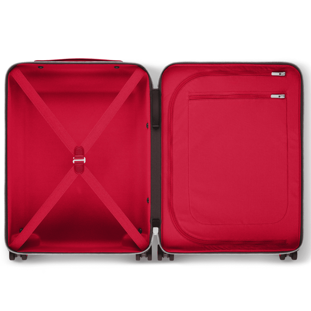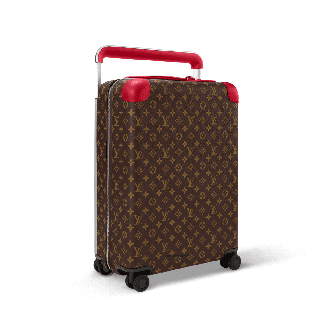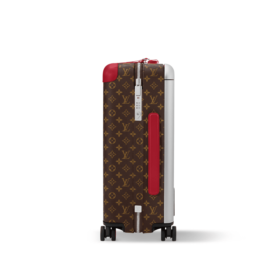 The Horizon 55 and Horizon 70 in Monogram Macassar canvas showcase bold Sari Red accents on the corners, cane handle, and wheels. Featuring an external cane structure for a spacious interior and a tonal red lining, these sleek rolling suitcases combine modern design with Louis Vuitton’s timeless craftsmanship. Perfect for both short and long journeys, they embody effortless elegance and contemporary travel style.