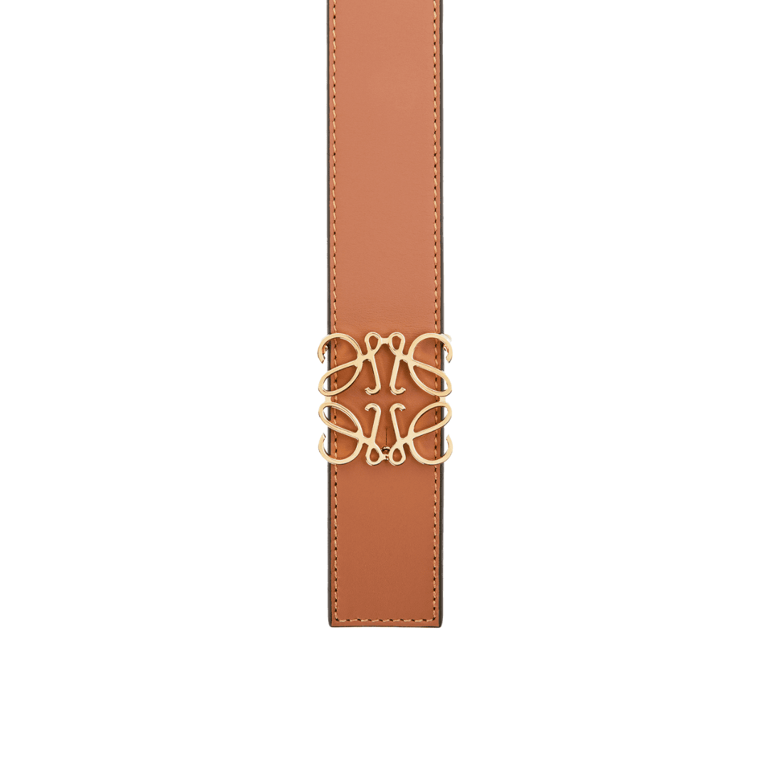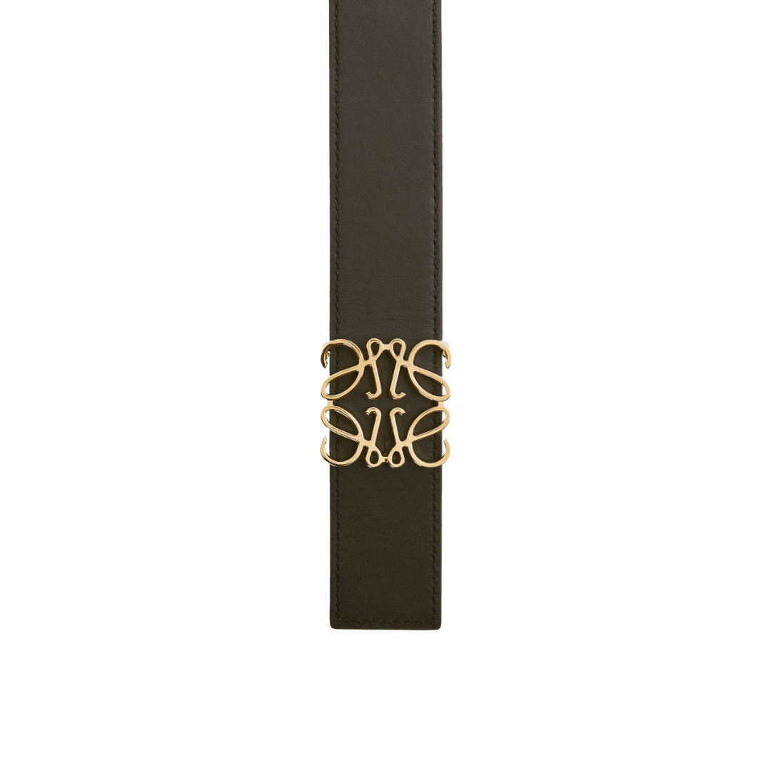 The Loewe Reversible Anagram Belt in Smooth Calfskin offers timeless sophistication and versatility. Expertly crafted from supple calfskin, it features a reversible design with two complementary tones and a signature Anagram buckle in a polished finish. Perfect for both formal and casual wear, it’s a refined statement of luxury and craftsmanship.