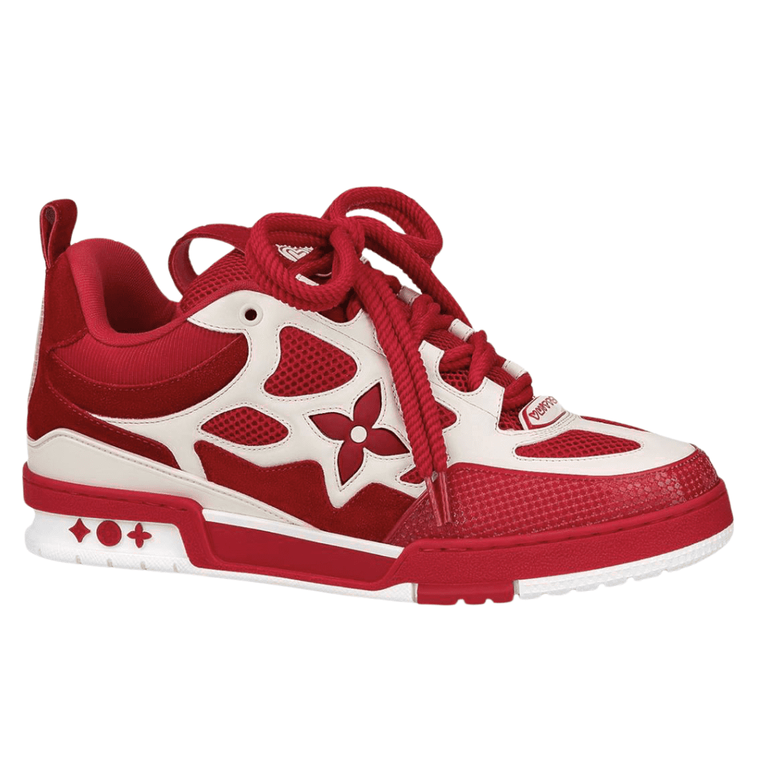The LV Skate Trainers reference a 90s-inspired design first seen at Louis Vuitton’s Fall-Winter 2022 Men’s Show. Their elaborate, two-tone uppers with Monogram Flower detailing combine technical mesh, calf leather and suede. This model is notable for its padded collar, technical double laces and two-tone rubber outsole decorated with Monogram Flowers.