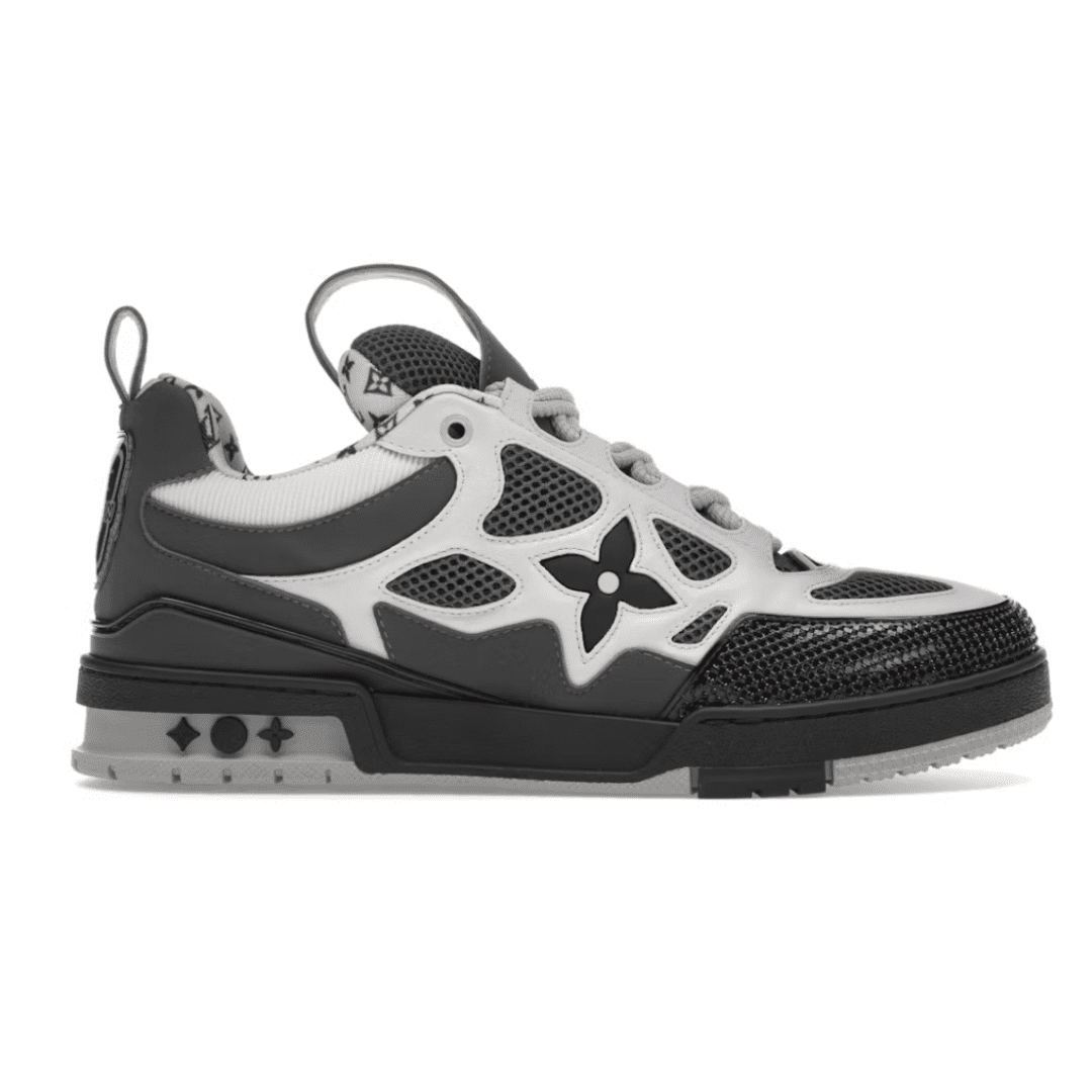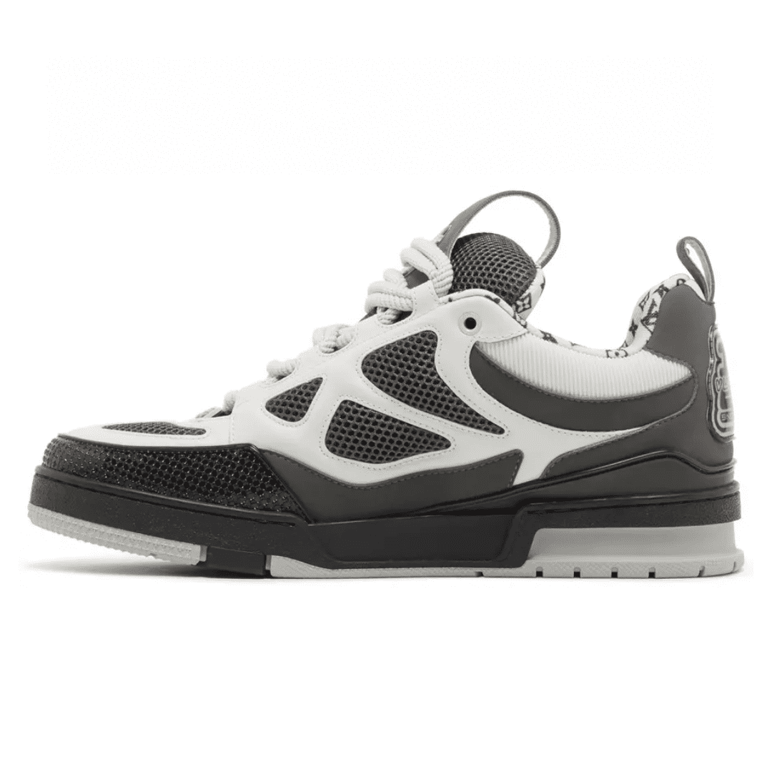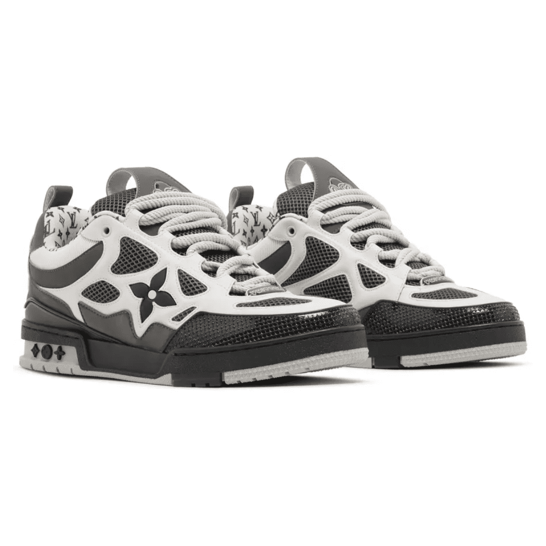 The LV Skate Trainers reference a 90s-inspired design first seen at Louis Vuitton’s Fall-Winter 2022 Men’s Show. Their elaborate, two-tone uppers with Monogram Flower detailing combine technical mesh, calf leather and suede. This model is notable for its padded collar, technical double laces and two-tone rubber outsole decorated with Monogram Flowers.