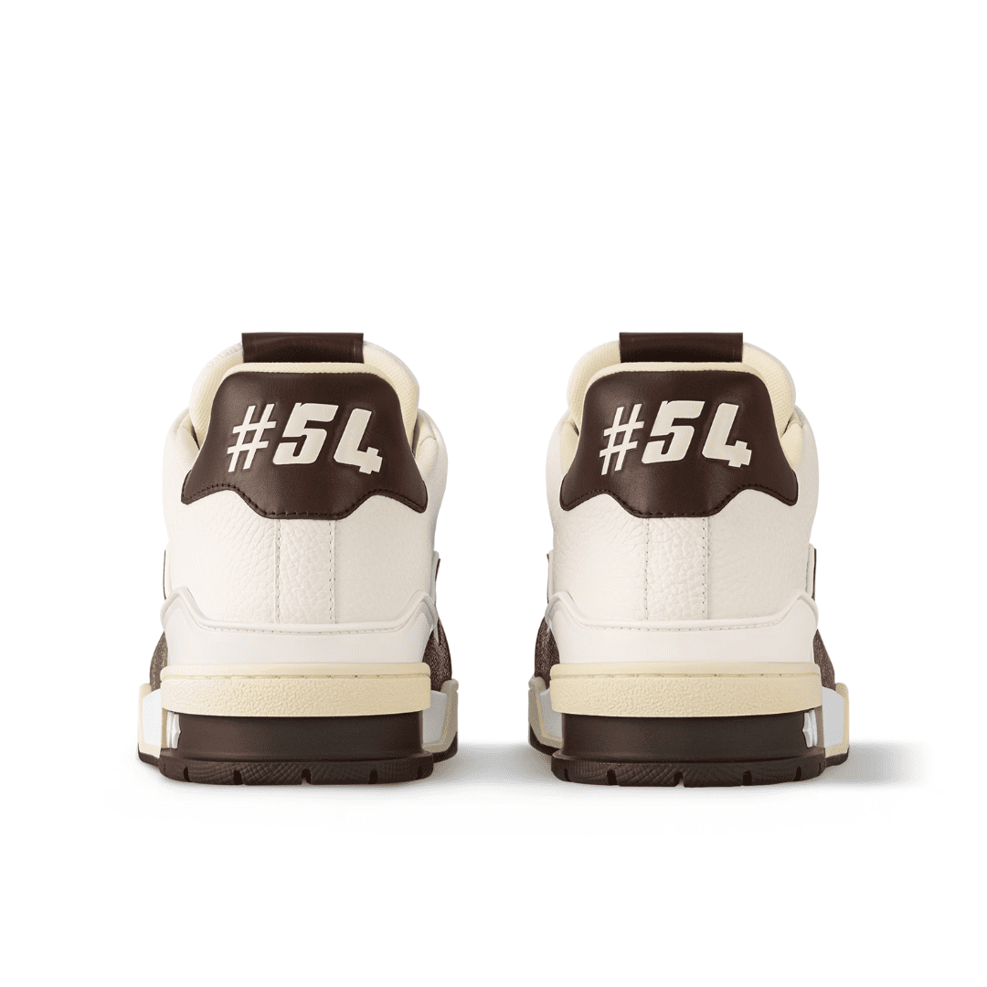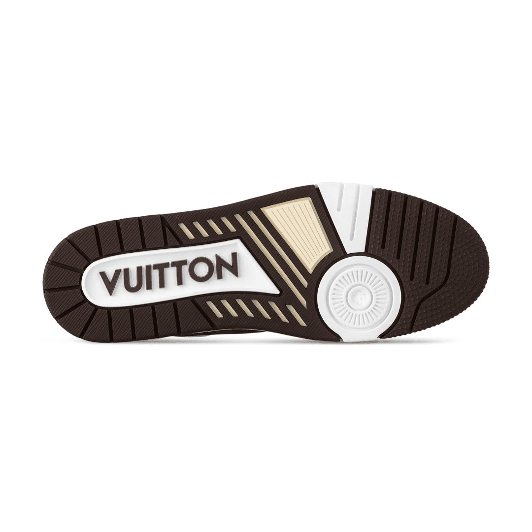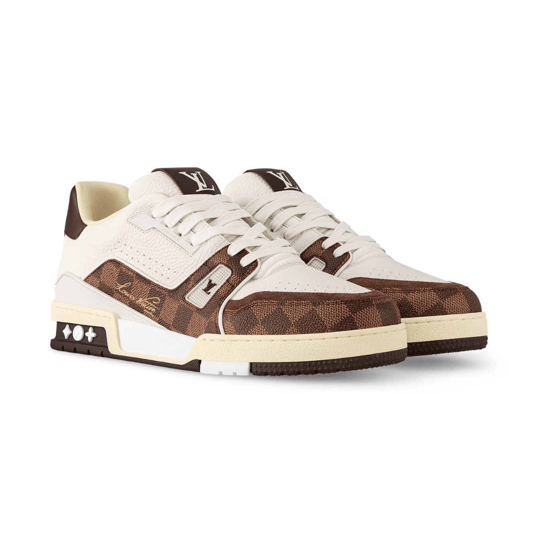 This elevated edition of the LV Trainer comes in a combination of grained calf leather and Damier grained calfskin, which replicates the look of Damier canvas. Originally designed by Virgil Abloh, this cult model was inspired by vintage basketball trainers. It is finished with a two-tone, technical outsole, which is decorated with Monogram Flowers.