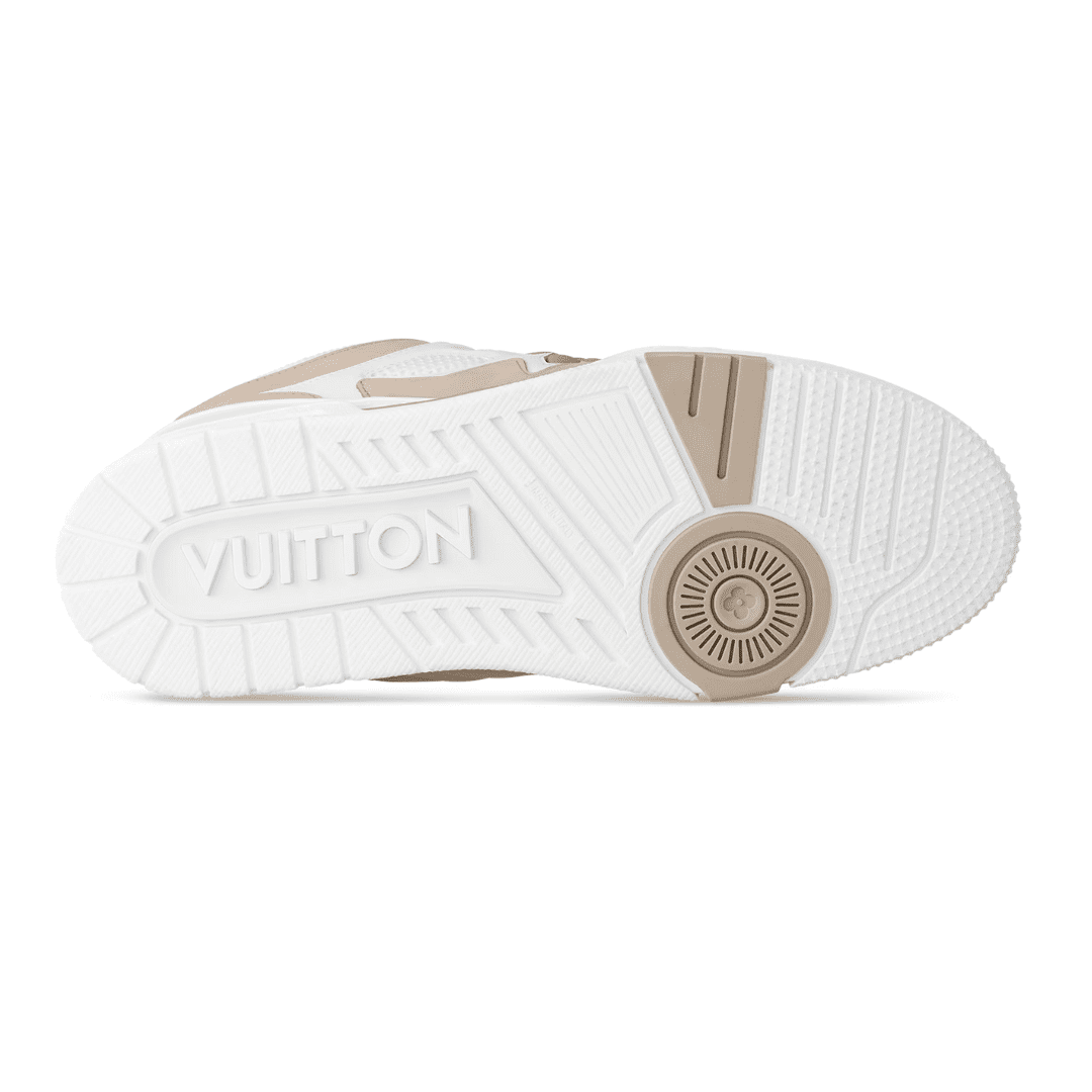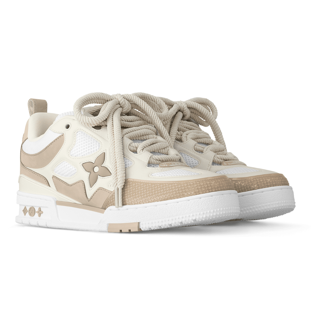 The LV Skate Trainers reference a 90s-inspired design first seen at Louis Vuitton’s Fall-Winter 2022 Men’s Show. Their elaborate, two-tone uppers with Monogram Flower detailing combine technical mesh, calf leather and suede. This model is notable for its padded collar, technical double laces and two-tone rubber outsole decorated with Monogram Flowers.