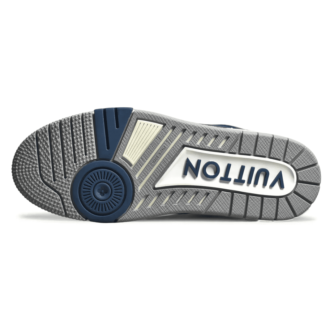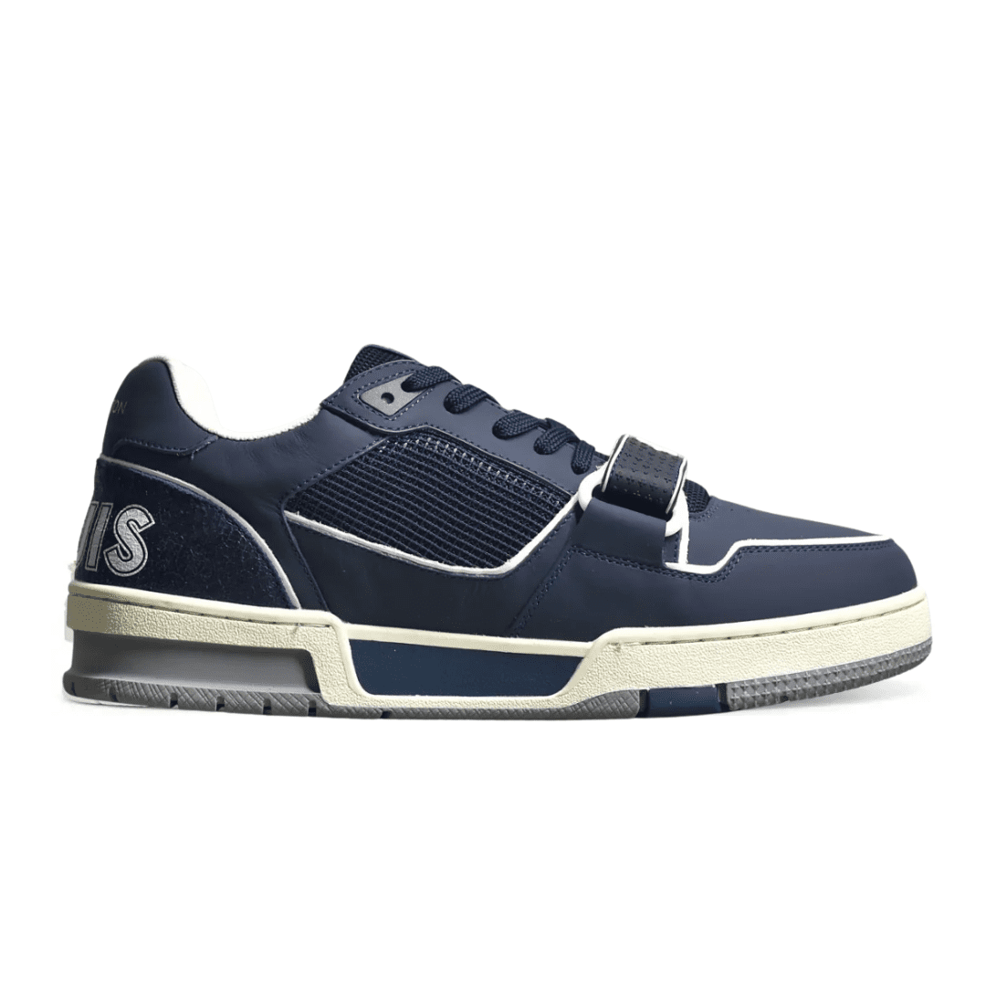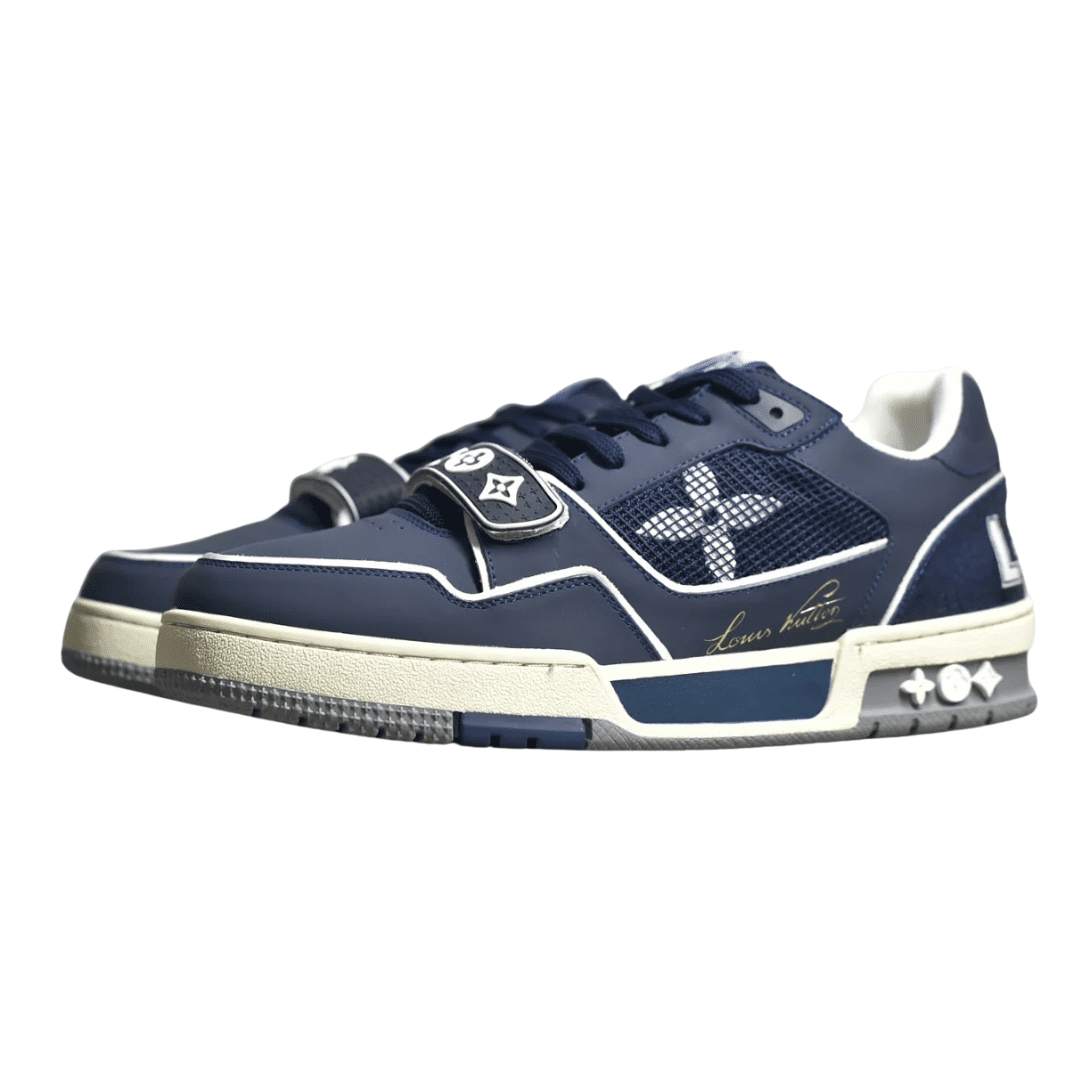 An iconic statement from the LV Trainer collection, this navy-blue rendition draws its heritage from vintage basketball sneakers and the artistic vision of Virgil Abloh. Crafted with meticulous attention to detail, it’s a seamless fusion of urban menswear and luxury craftsmanship.