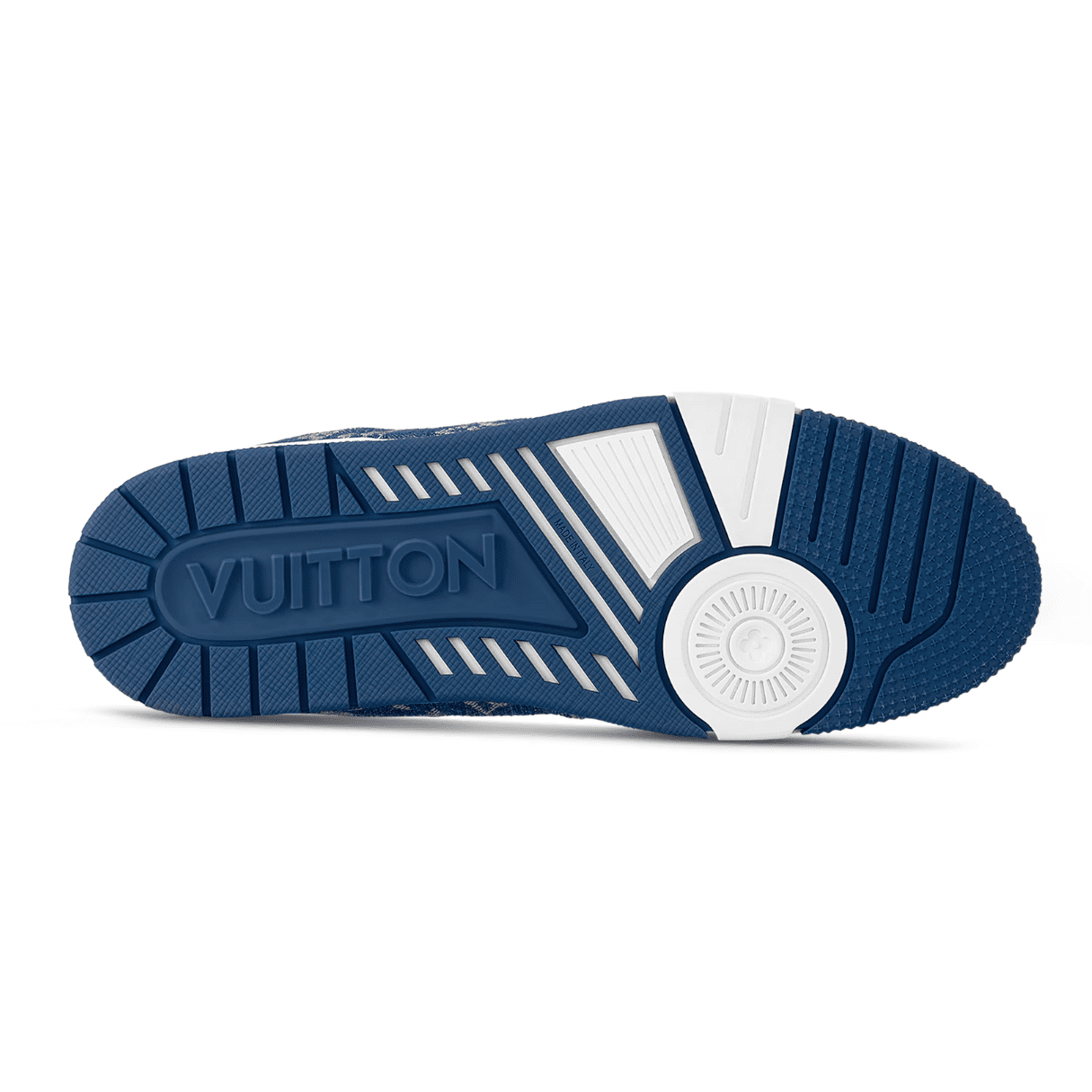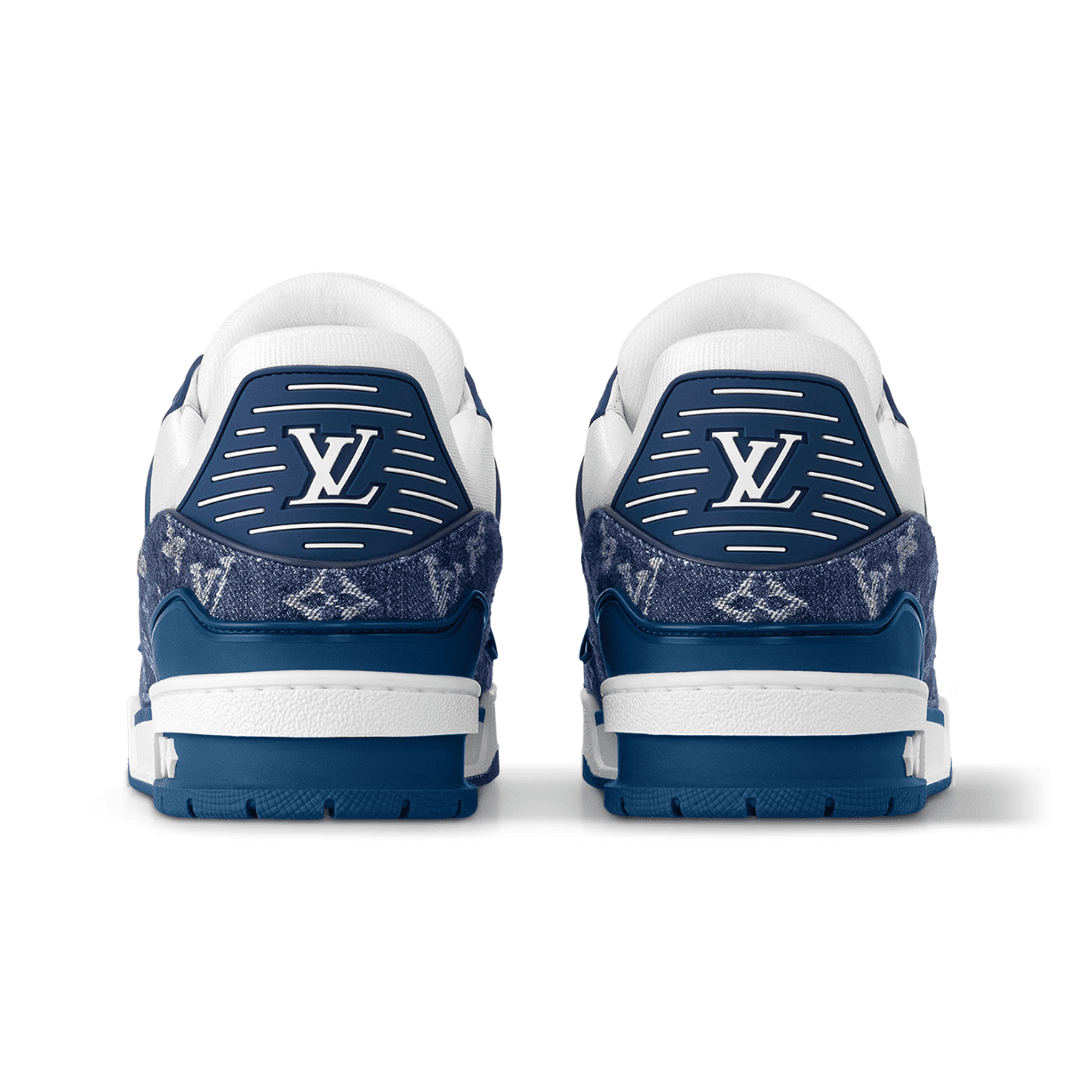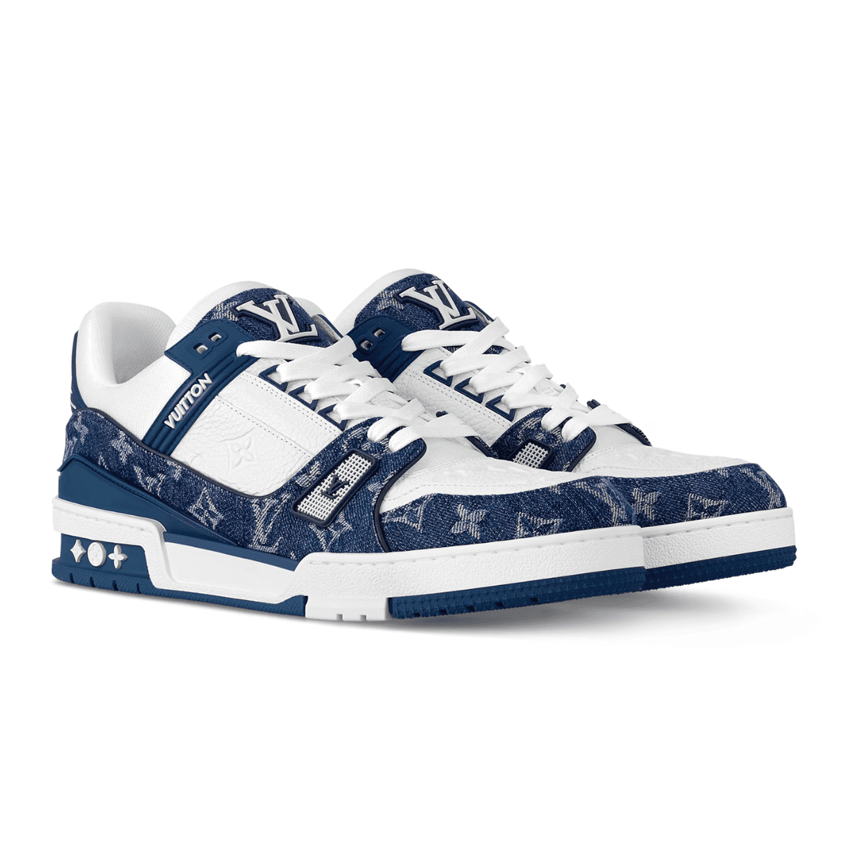 Designed by former Louis Vuitton Artistic Director Virgil Abloh, the iconic LV Trainers are revisited this season in Monogram denim and Monogram-embossed grained calf leather. The contrasting colours and materials highlight the elaborate construction of this model, which was inspired by vintage basketball trainers.