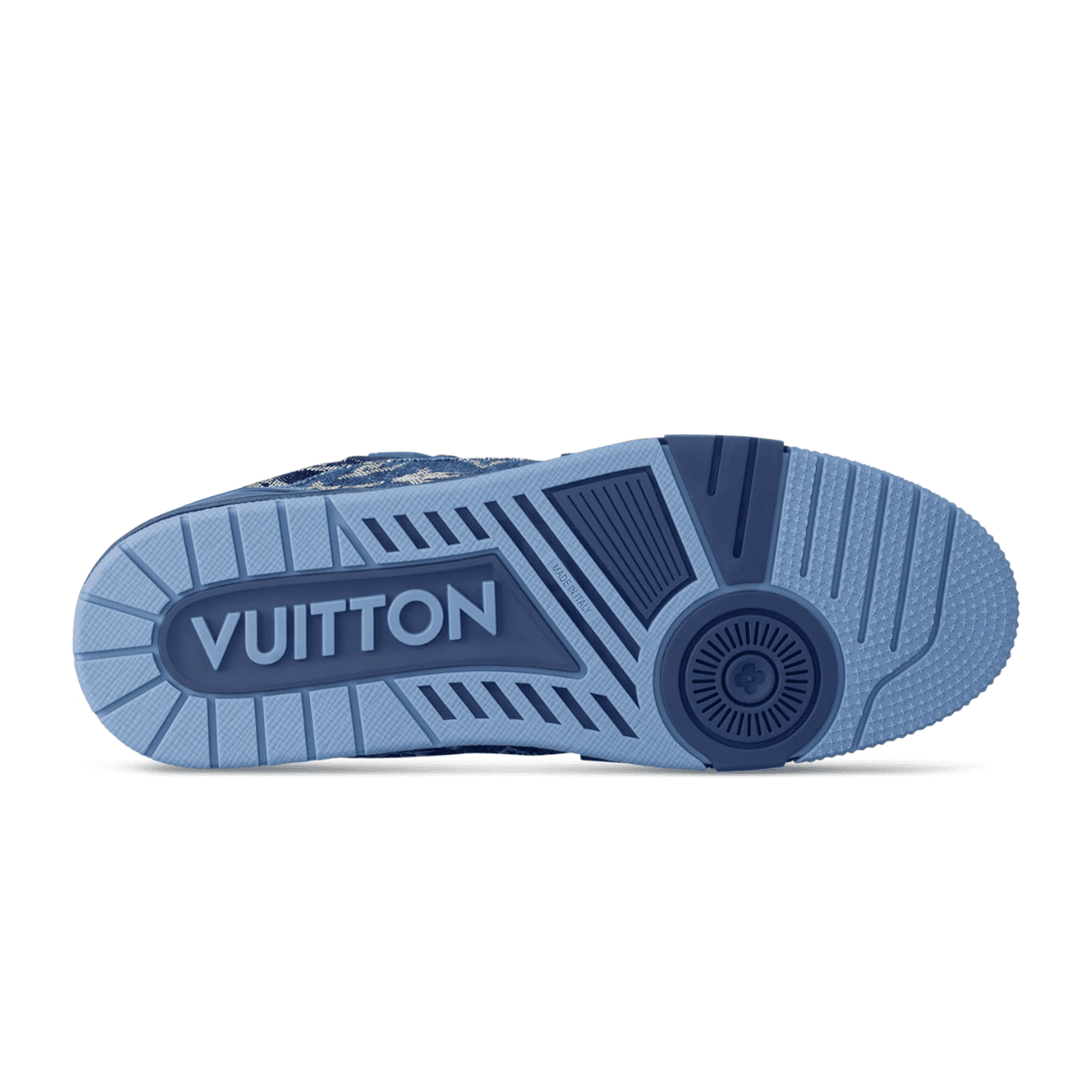 The iconic LV Trainer sneaker is revisited this season in a combination of Monogram denim and Monogram-embossed grained calf leather. The contrasting colors and materials highlight the elaborate construction of this model, which was inspired by vintage basketball sneakers.