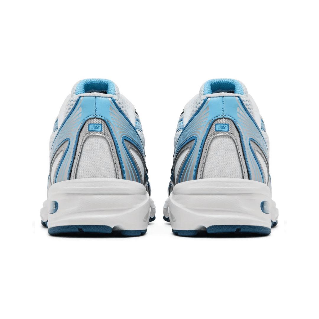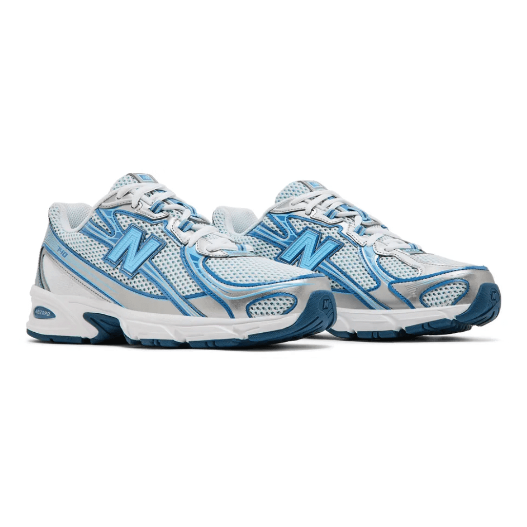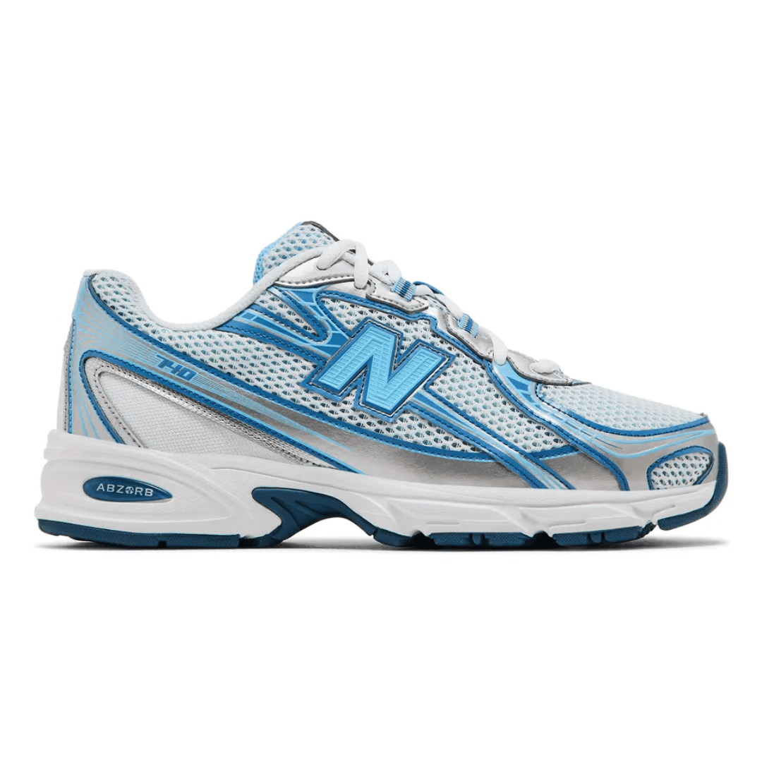 The New Balance 740 ‘Blue Agate White’ features a white open-cell mesh upper with synthetic metallic silver overlays outlined in blue trim. A molded blue ‘N’ logo decorates the quarter panel, while a Flying NB insignia graces the tongue and back heel. The retro runner is mounted on a lightweight ABZORB midsole, supported underfoot by a durable rubber outsole with flex grooves for a smooth and comfortable stride.
