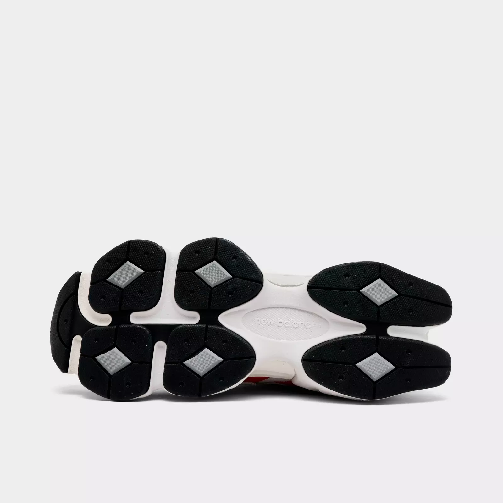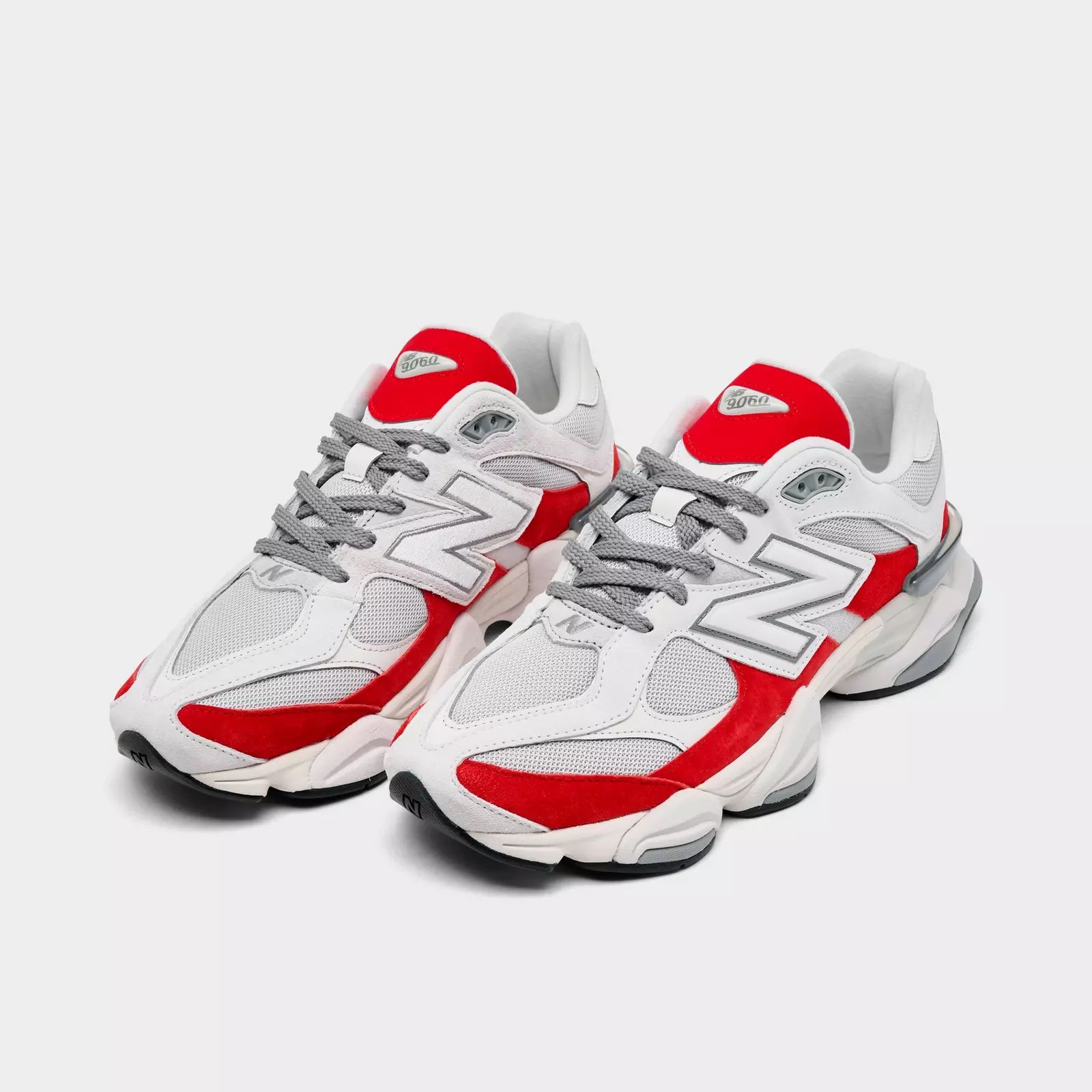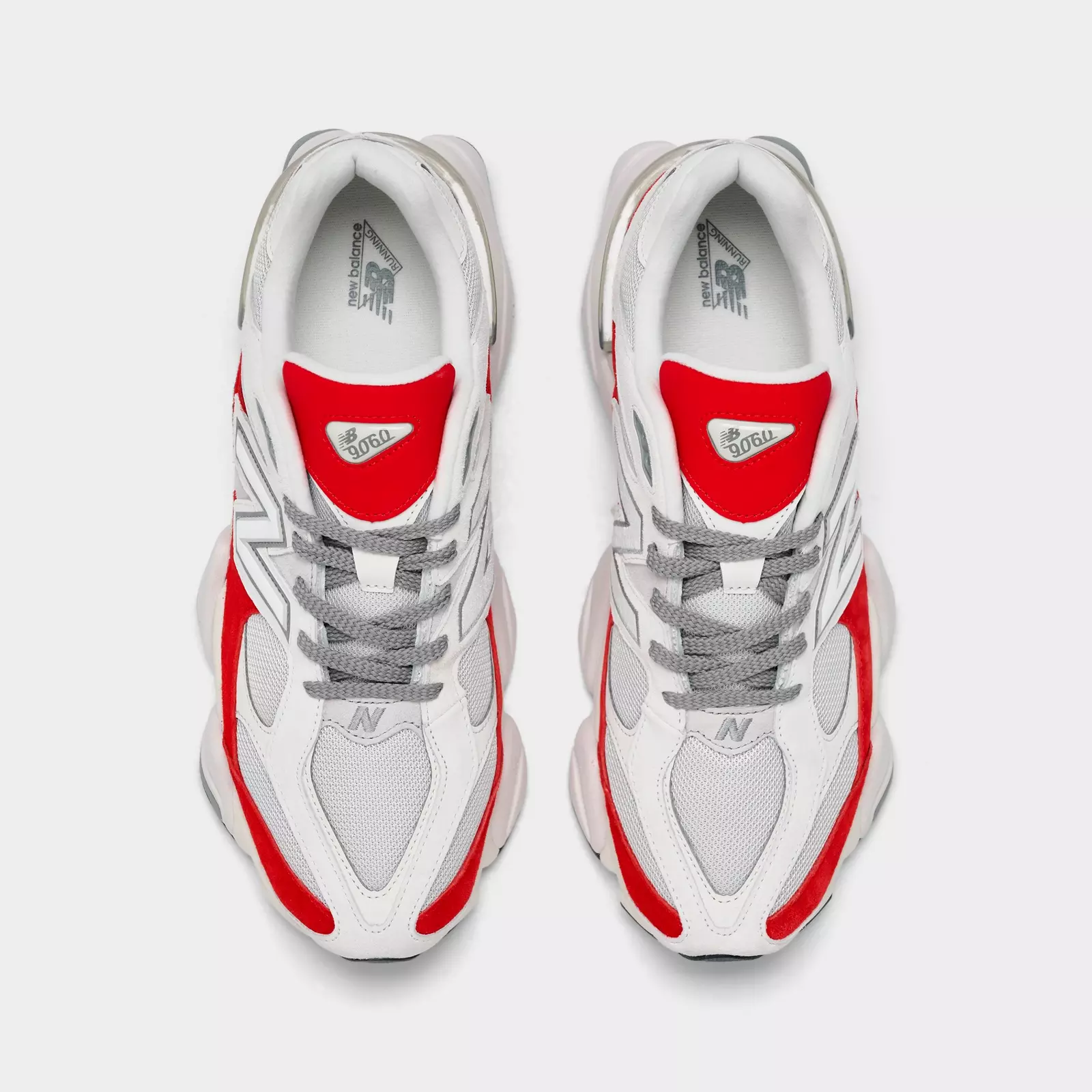 The New Balance 9060 ‘White Red’ rocks an off-white mesh upper with matching leather overlays. The red suede mudguard and tongue complement the design, the latter sporting a jeweled NB 9060 badge. A partially see-through CR device on the heel works closely with a dual-density ABZORB midsole with SBS cushioning.