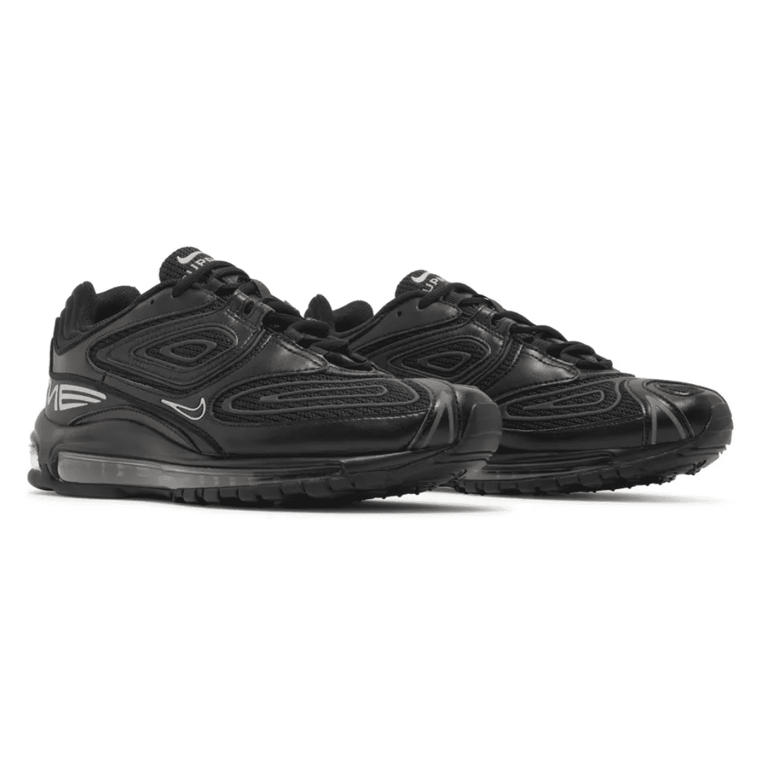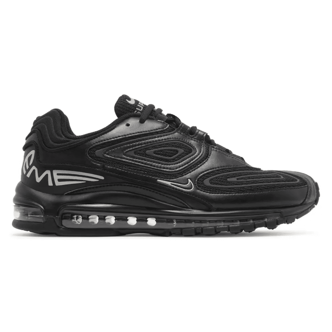 The Supreme x Nike Air Max 98 TL SP ‘Black’ is taken from a four-piece collection made exclusively for the influential New York skate brand. Supreme’s take on the ‘90s running shoe showcases a reworked upper built with black mesh and tonal overlays in TPU and synthetic leather. Reflective threads are woven into the laces, while additional hits of 3M make their way to the lateral-side Swoosh and a wraparound Supreme wordmark along the back heel. The latter is accompanied by a retro TL badge. The sneaker sits atop a matching black foam midsole, featuring a full-length Air-sole unit for soft landings and a smooth ride.