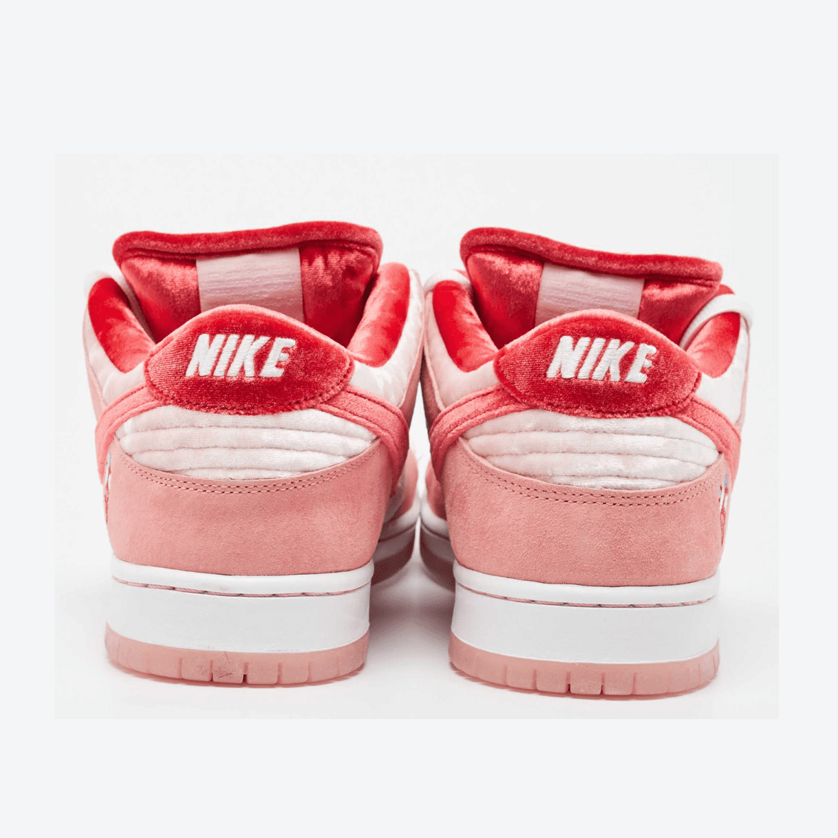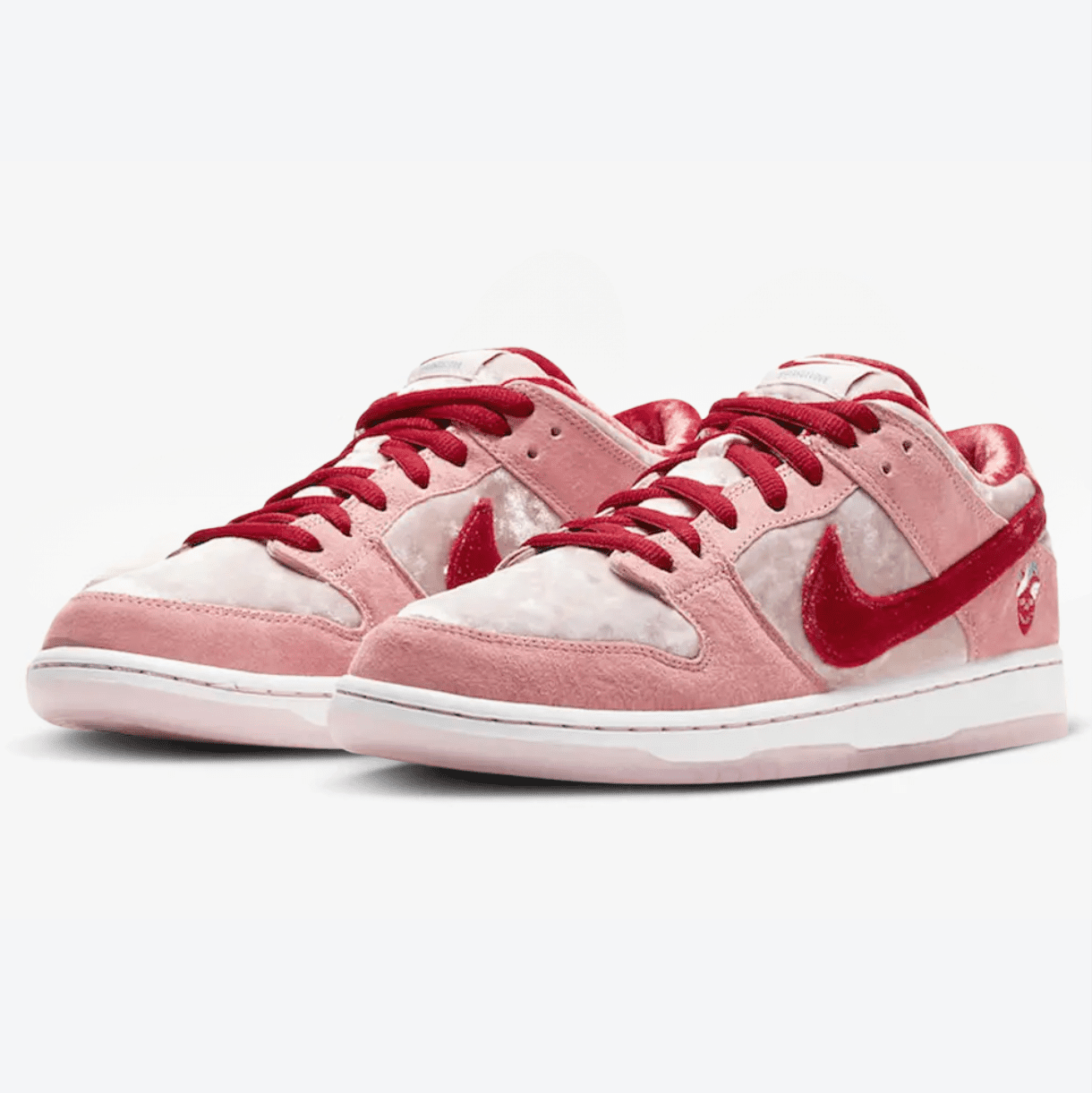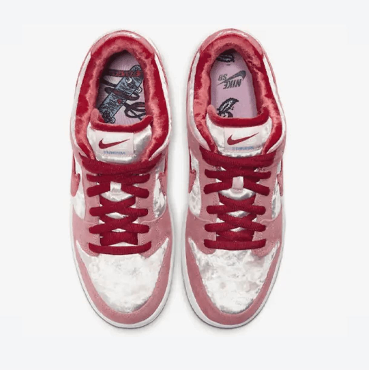 The Nike SB Dunk Low “StrangeLove” is a Valentine’s Day-inspired release that instantly became one of the most coveted SBs of all time. Designed in collaboration with California skate brand StrangeLove Skateboards, this sneaker mixes playful design with skate-ready performance, making it both a collector’s item and a streetwear statement.