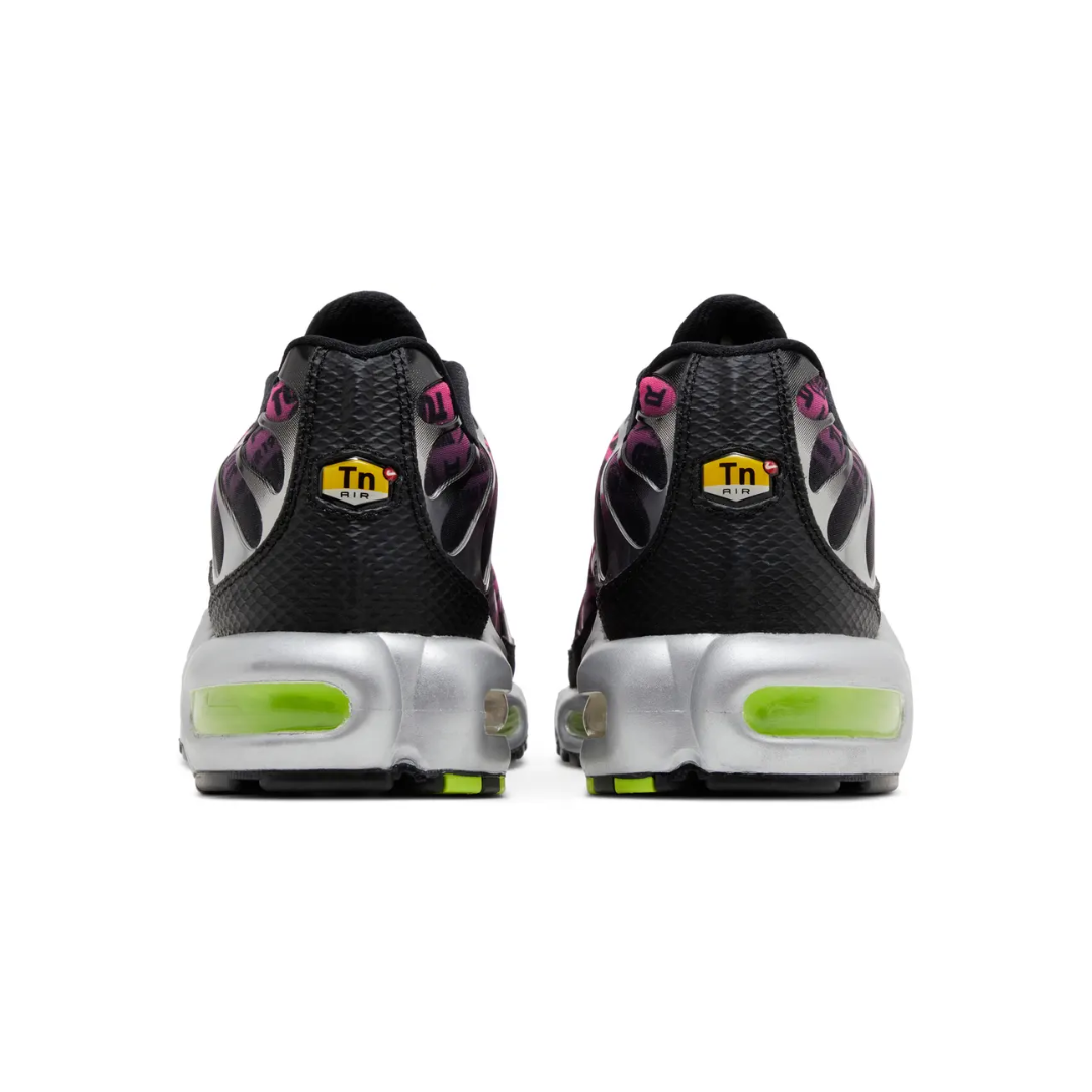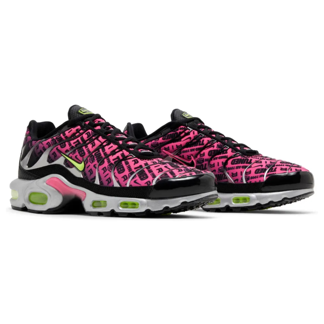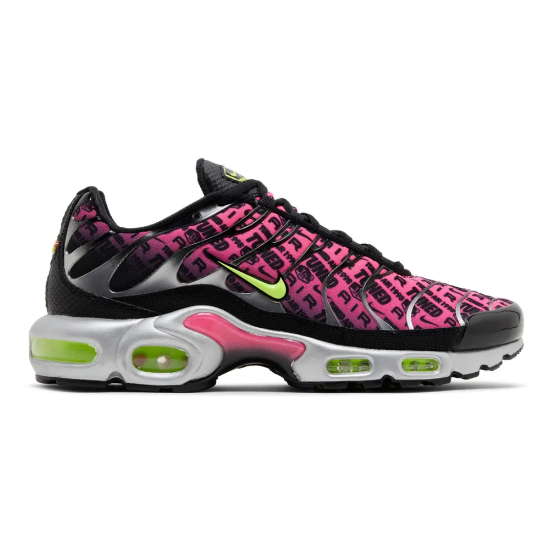 A bold fusion of sport and street, the Nike Air Max Plus “Mercurial 25” brings high-energy design to a classic silhouette. Featuring a vibrant pink graphic upper contrasted by sleek black overlays and neon green accents, this pair delivers instant visual impact. Tuned Air cushioning in the sole provides responsive comfort and stability, while the iconic TN design keeps it rooted in Nike heritage. A statement sneaker built for standout everyday wear.