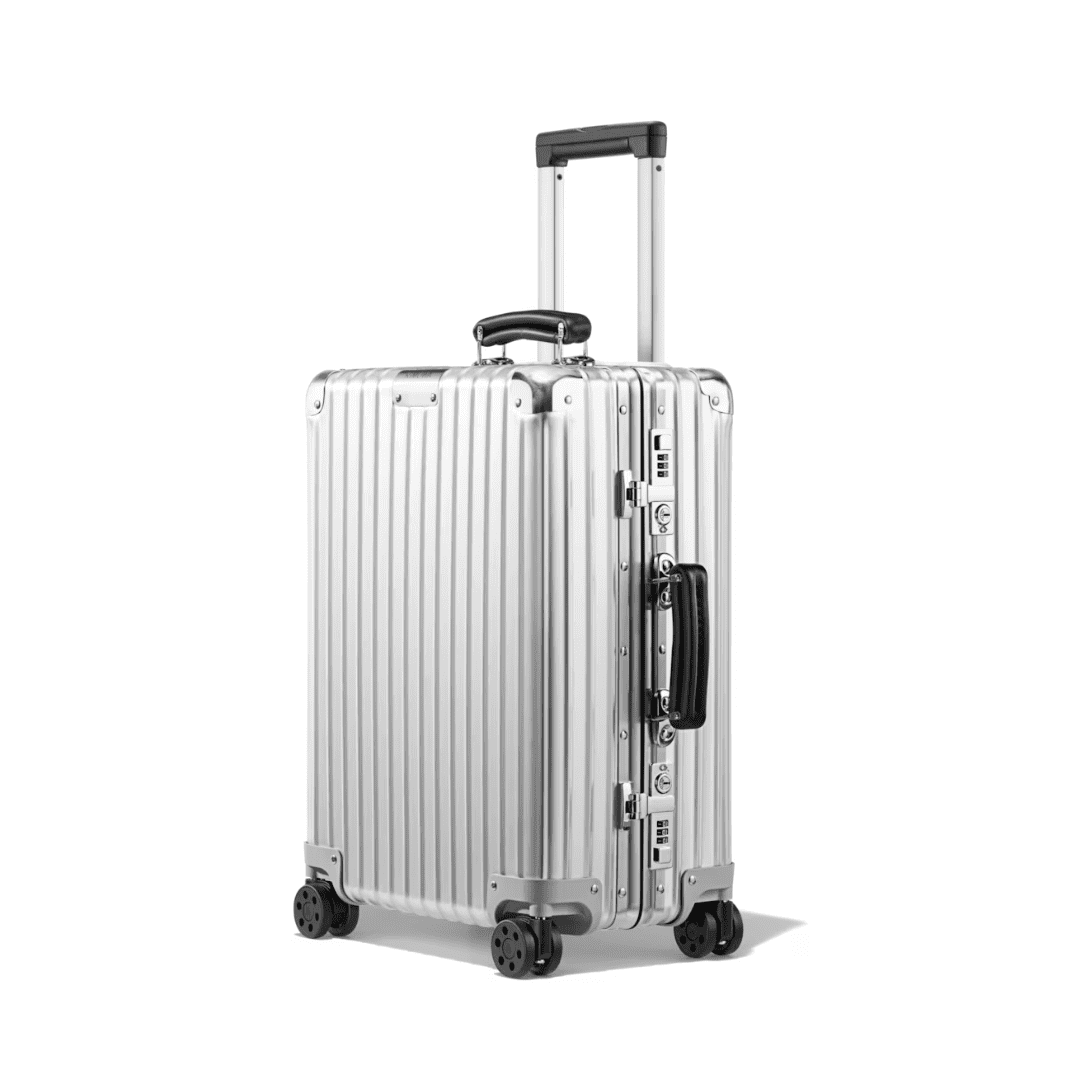 Crafted in high-end anodised aluminium with leather handles, the RIMOWA Classic blends heritage design with precision engineering – a timeless choice for discerning travellers.