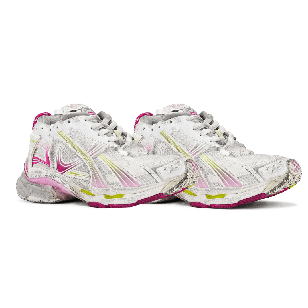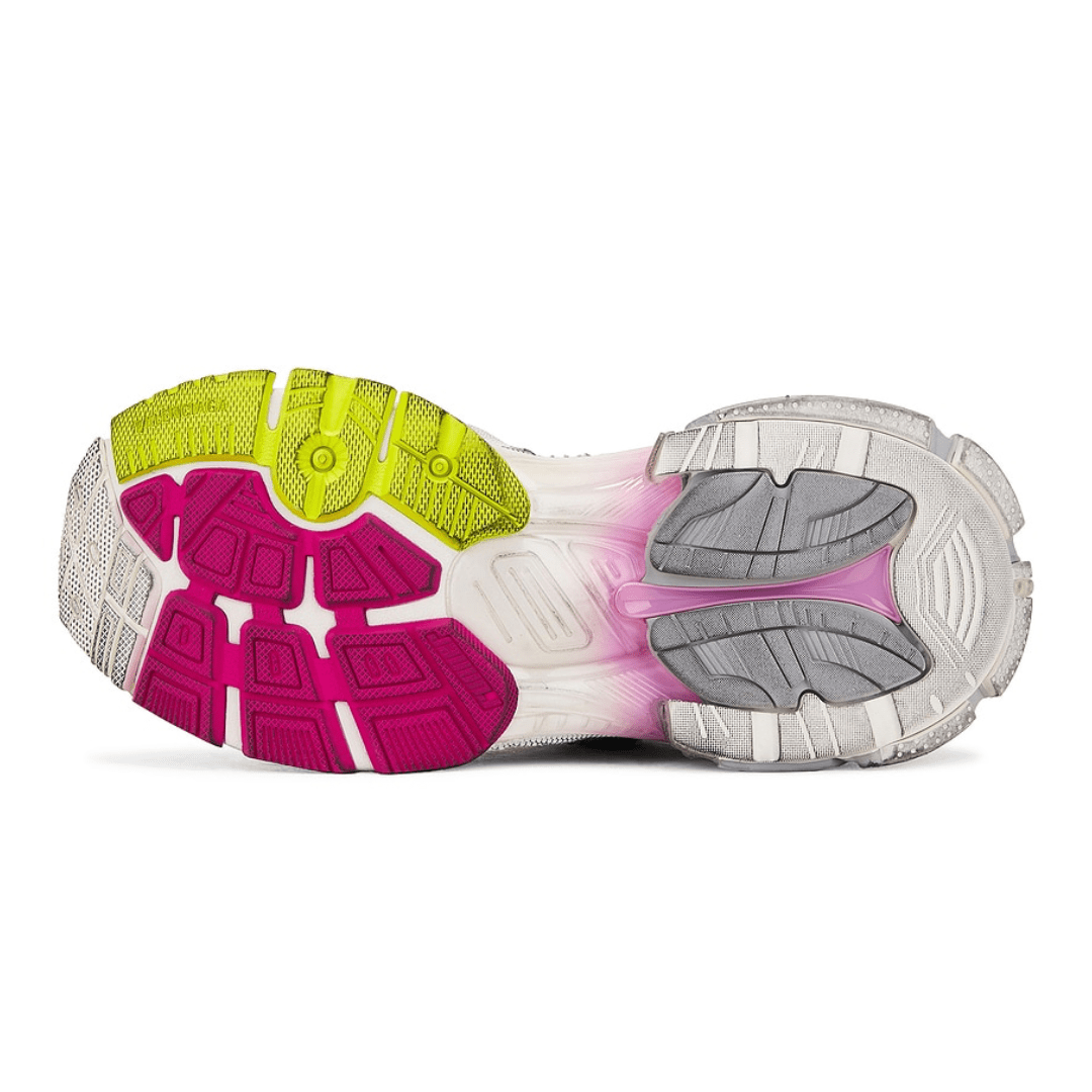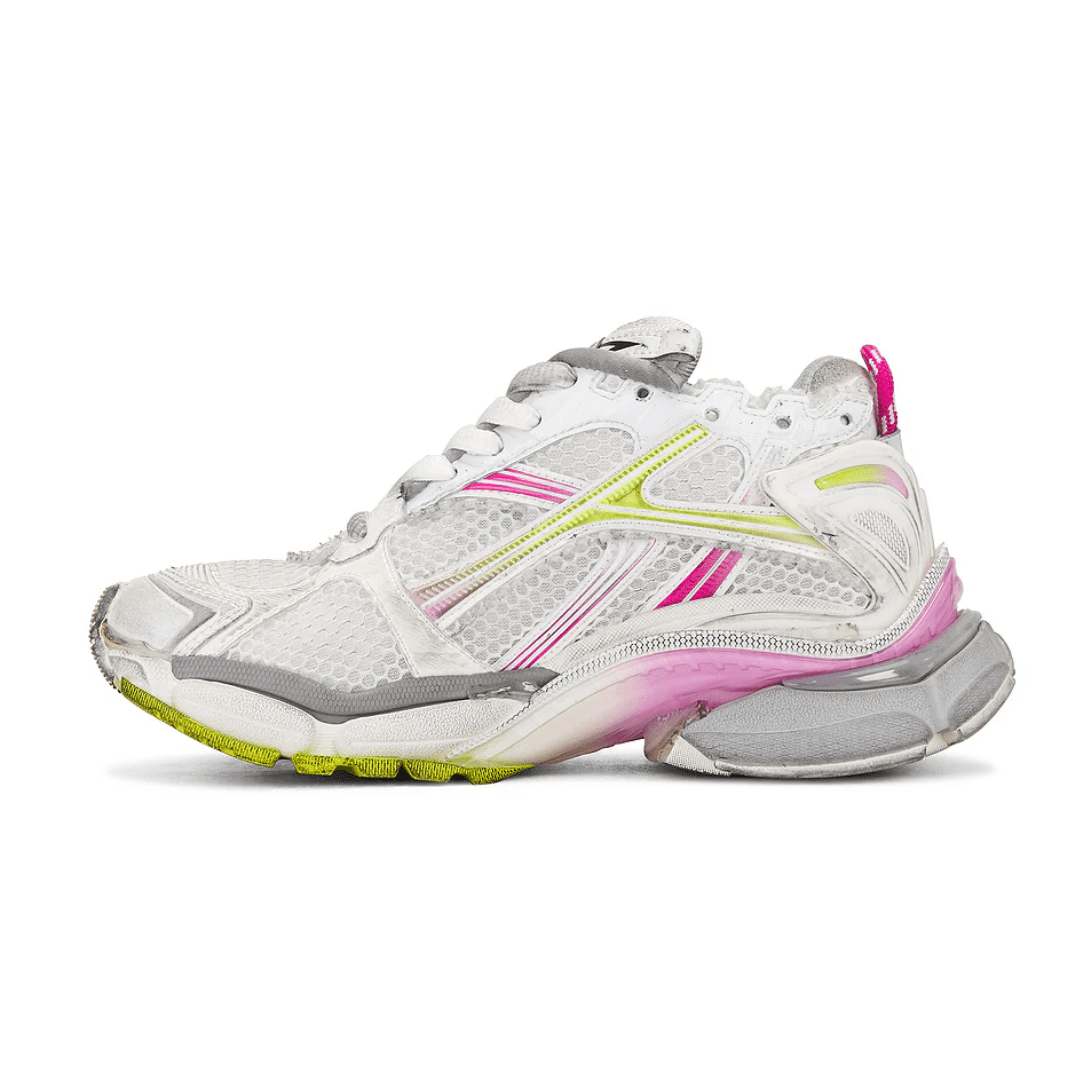 The Wmns Runner Sneaker blends Balenciaga’s deconstructed running silhouette with a vibrant gradient colourway. Crafted in layered pink and fluo yellow mesh and nylon, it combines technical construction with a bold, contemporary aesthetic.