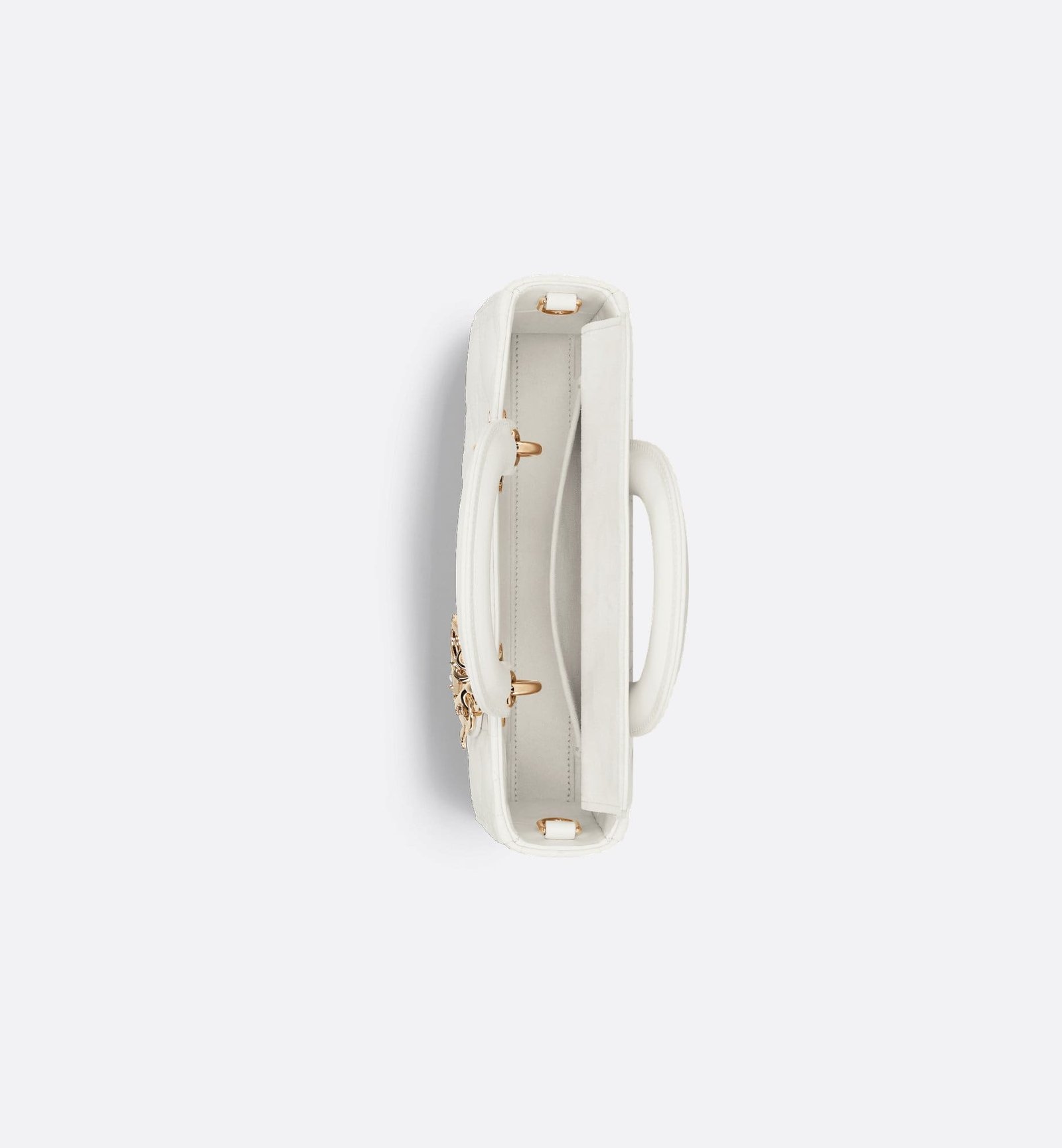 The Lady D-Joy bag captures the House’s vision of elegance and beauty by showcasing the iconic streamlined aesthetic of the Lady Dior line. Crafted in latte lambskin with Cannage stitching, the refined and timeless style is enhanced by pale gold-finish metal D.I.O.R. charms illuminating its silhouette. Featuring one detachable chain strap and another adjustable and removable leather strap, the small Lady D-Joy bag can be carried by hand, worn over the shoulder or crossbody as a daily companion.