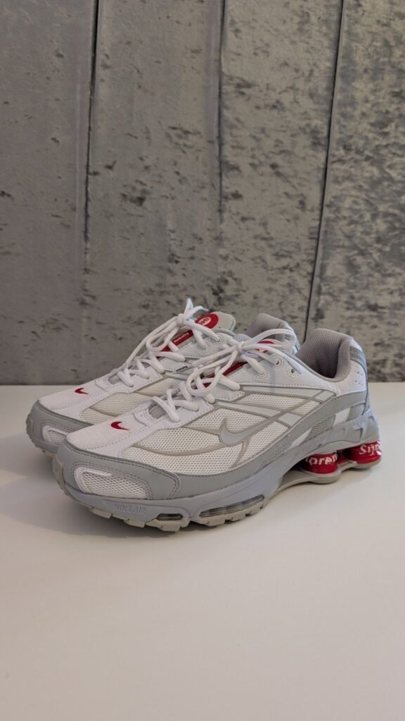A Supreme and Nike collaboration featuring the Shox Ride 2 silhouette with mesh and leather overlays, Shox cushioning, and co-branded detailing. Designed for comfort and style both on the streets and in training.