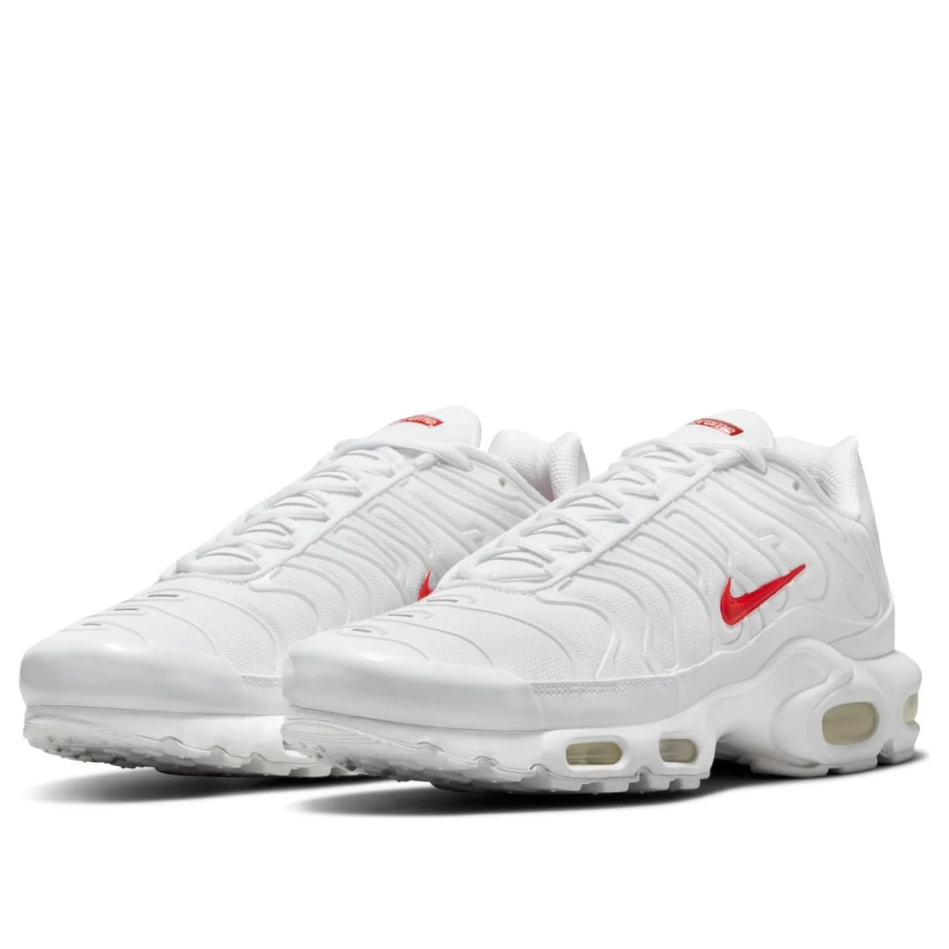 Supreme has worked with Nike on a new version of the Air Max Plus. The shoe features a mesh upper with custom logo TPU fingers at the sides, raised TPU logos at the tongue and heel, a TPU toe cap, a suede side and heel panels, a polyurethane foam midsole, a Tuned Air cushioning rubber outsole with a TPU shank plate, a mesh tongue with reflective design panels and a co-branded footbed.