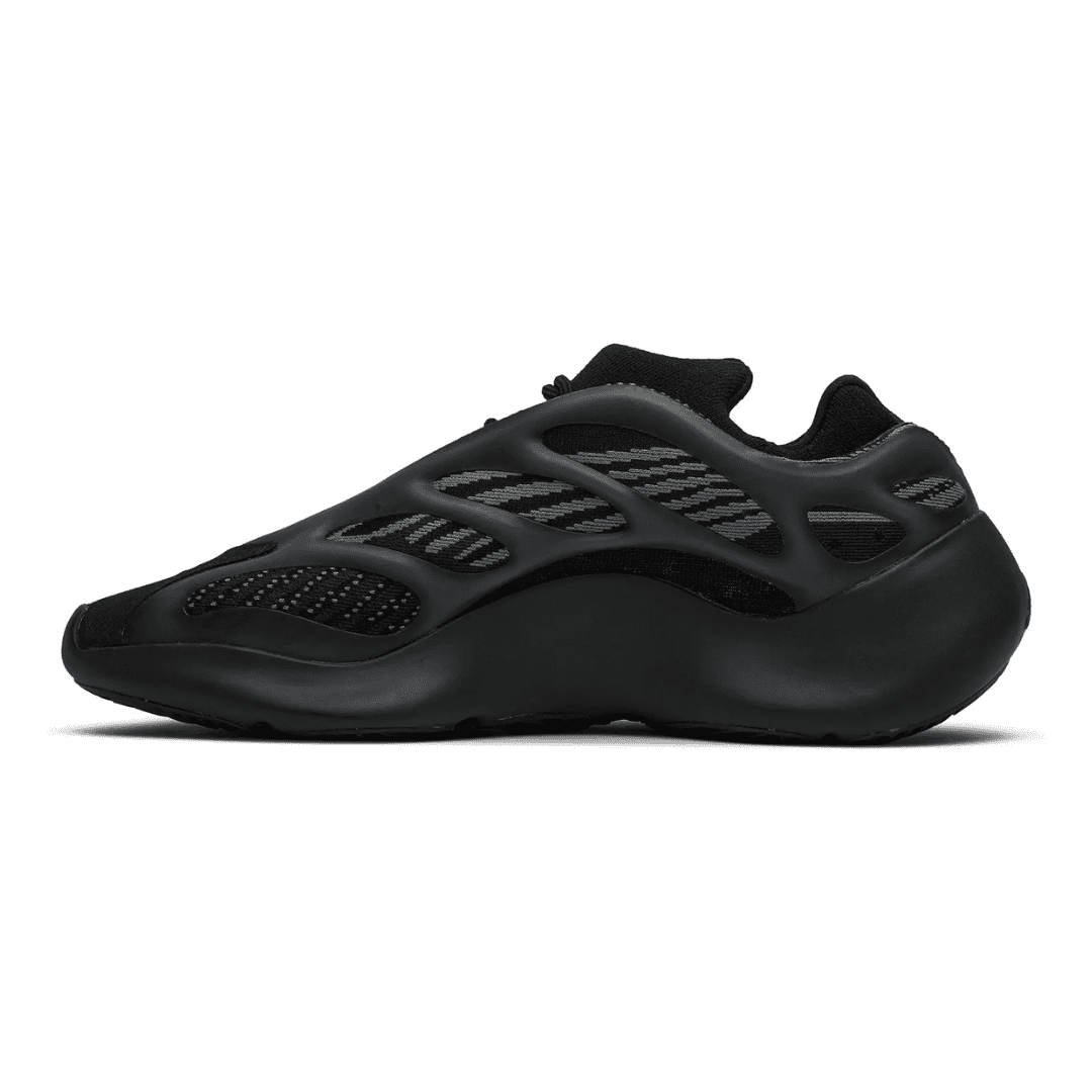 The Yeezy 700 V3 ‘Alvah’ delivers a stealthy colorway of Kanye West’s sculpted silhouette. A black and grey mesh upper is fortified with glow-in-the-dark RPU overlays for structural support. Interior bootie construction is good for a snug, comfortable fit, while reflective accents at the base of the tongue deliver added visibility in low-light conditions. Forgoing Boost cushioning, the sneaker rides on a PU encapsulated EVA midsole.